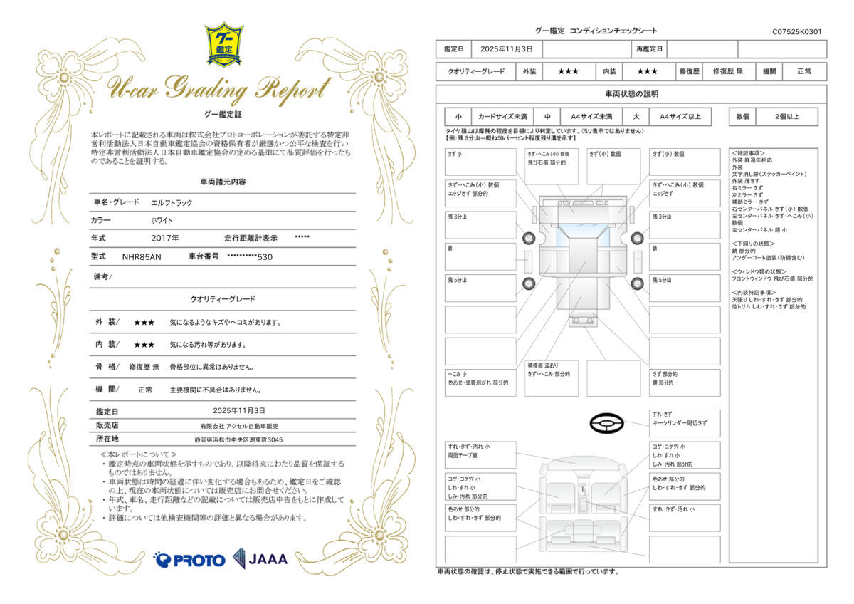 初度登録年月:平成29年6月 型式:TPG−NHR85AN 原動機の型式:4JJ1 車体の形状:バン 乗車定員:3人 8