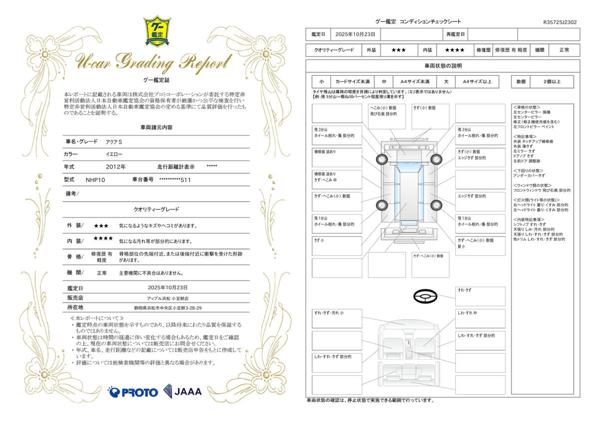 [保証付]:12ヶ月・走行無制限 保証範囲は104項目。主要部分のエンジン機構、動力伝達機を保証いたします。修理代金の10万円までの保証となります。オプションのプレミアムプランは333項目を2年間保証いたします。上限金額はありません。 |