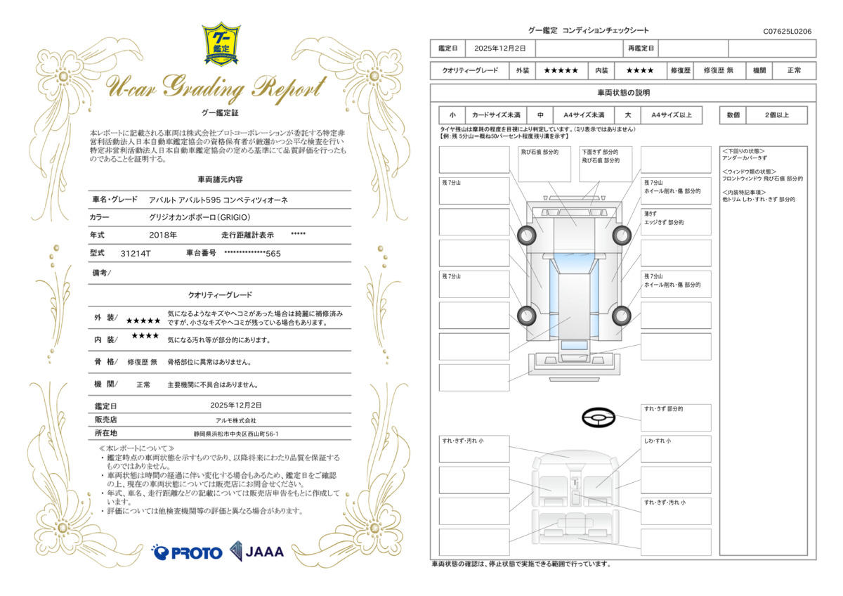 | 保証について | [保証付]:1ヶ月・1000km ※いずれか早い時期が保証適用の条件となります。 |