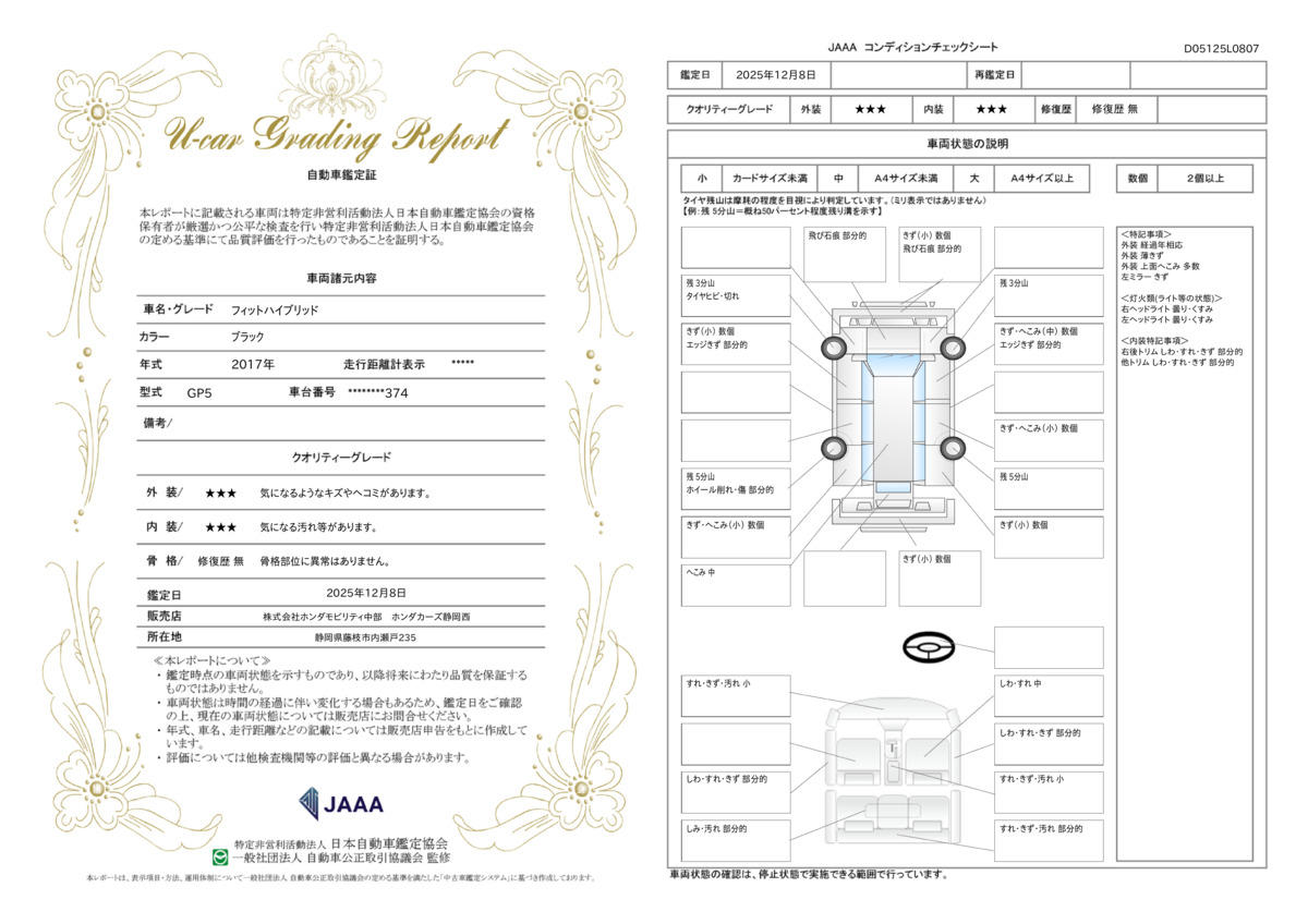 ホンダ フィットハイブリッド Fパッケージ 1年保証 ワンオ−ナ− ナビVXM−174VFi TV Rカメラ DVD ETC LEDライト VSA スマ−トキ− スペアキー 盗難防止装置 整備記録簿 AAC Wエアバッグ 盗難警報装置 ABS付