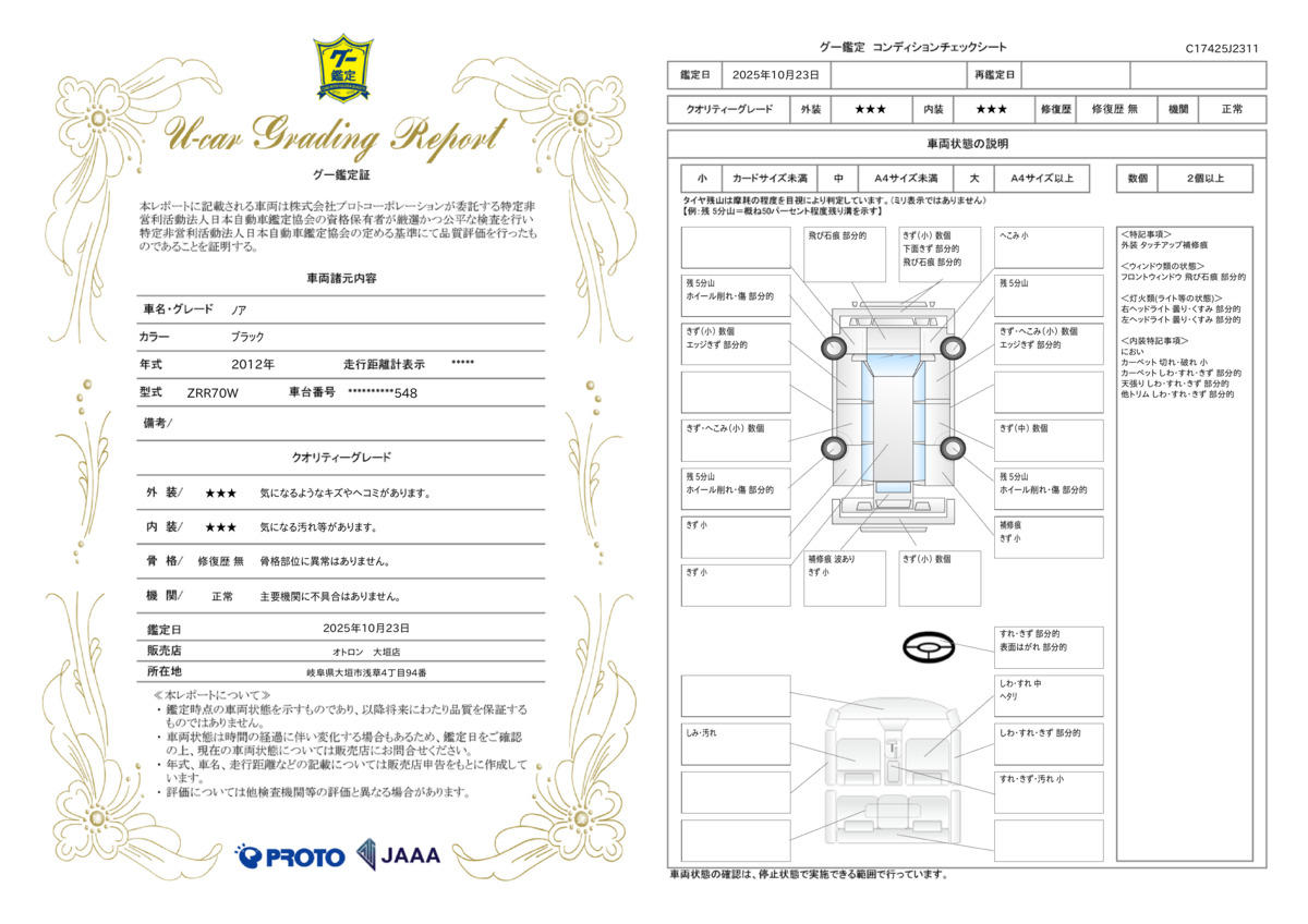 | 保証項目 | 計10項目 エンジン、ギア、トランスミッション、ステアリング機構、サスペンション、ドライブシャフト、デフ、エアコン、発電機、ブレーキ関係※いずれもオイル漏れ、経年劣化を除く。別途適用外事項は納車時にご説明します。 |