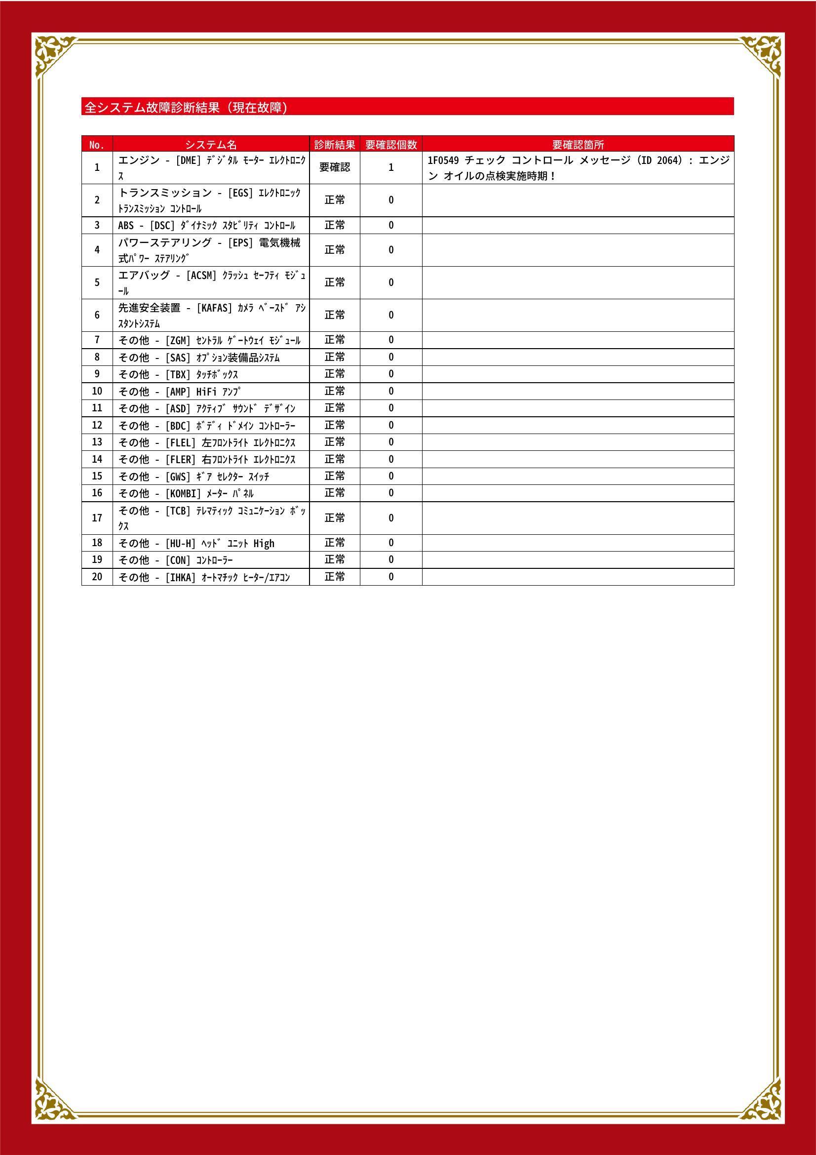 本保証の開始時からの走行距離が500Kmに満たない車両に生じたエンジン本体及びトランスミッションの交換又はオーバーホールについて、本保証に基づき保証修理を行う責任を負わないものとします。 |