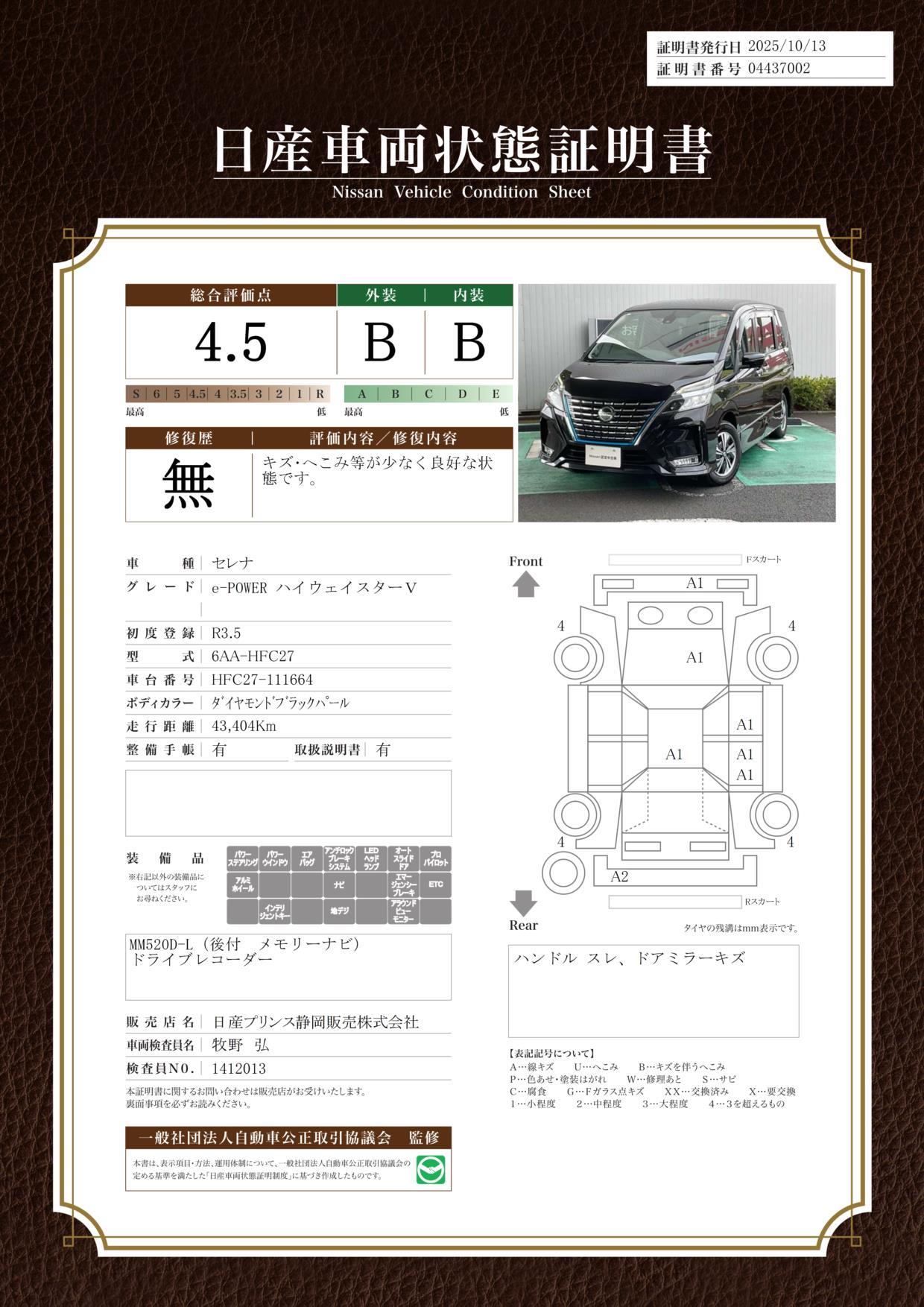 • また、修復歴・法定整備・保証の有無ならびに詳細内容につきましても、必ず各販売店にご確認いただきますようお願いいたします。