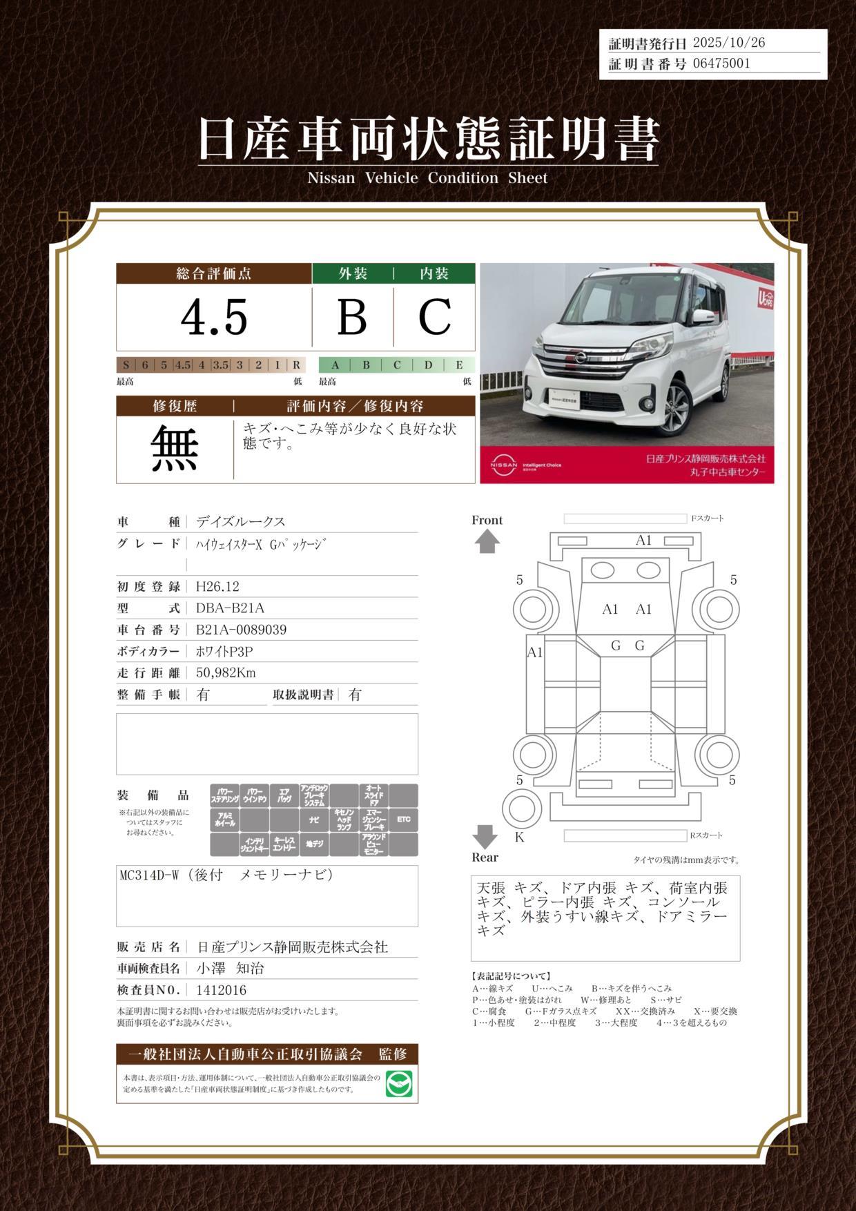 | 保証について | [保証付]:12ヶ月・走行無制限 |
