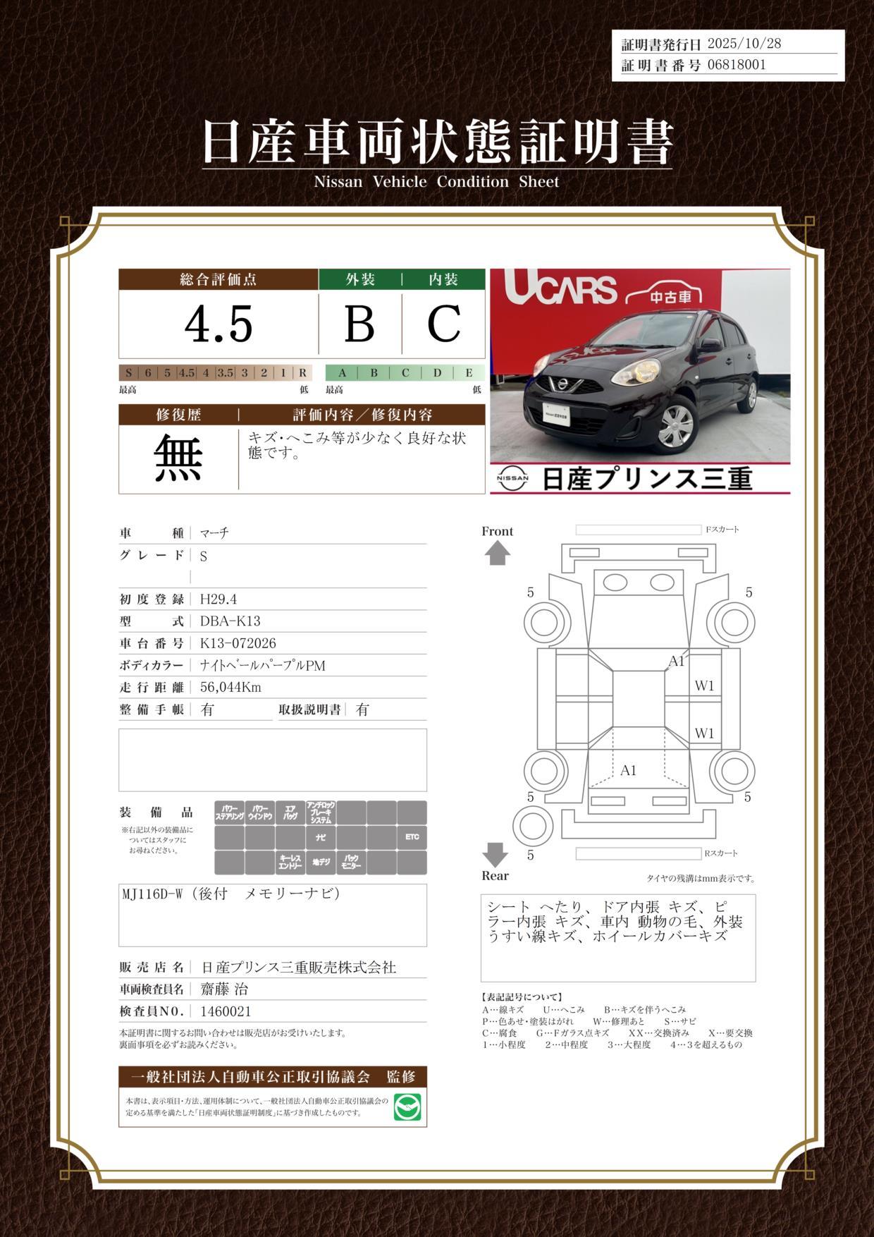 | 保証について | [保証付]:12ヶ月・走行無制限 |