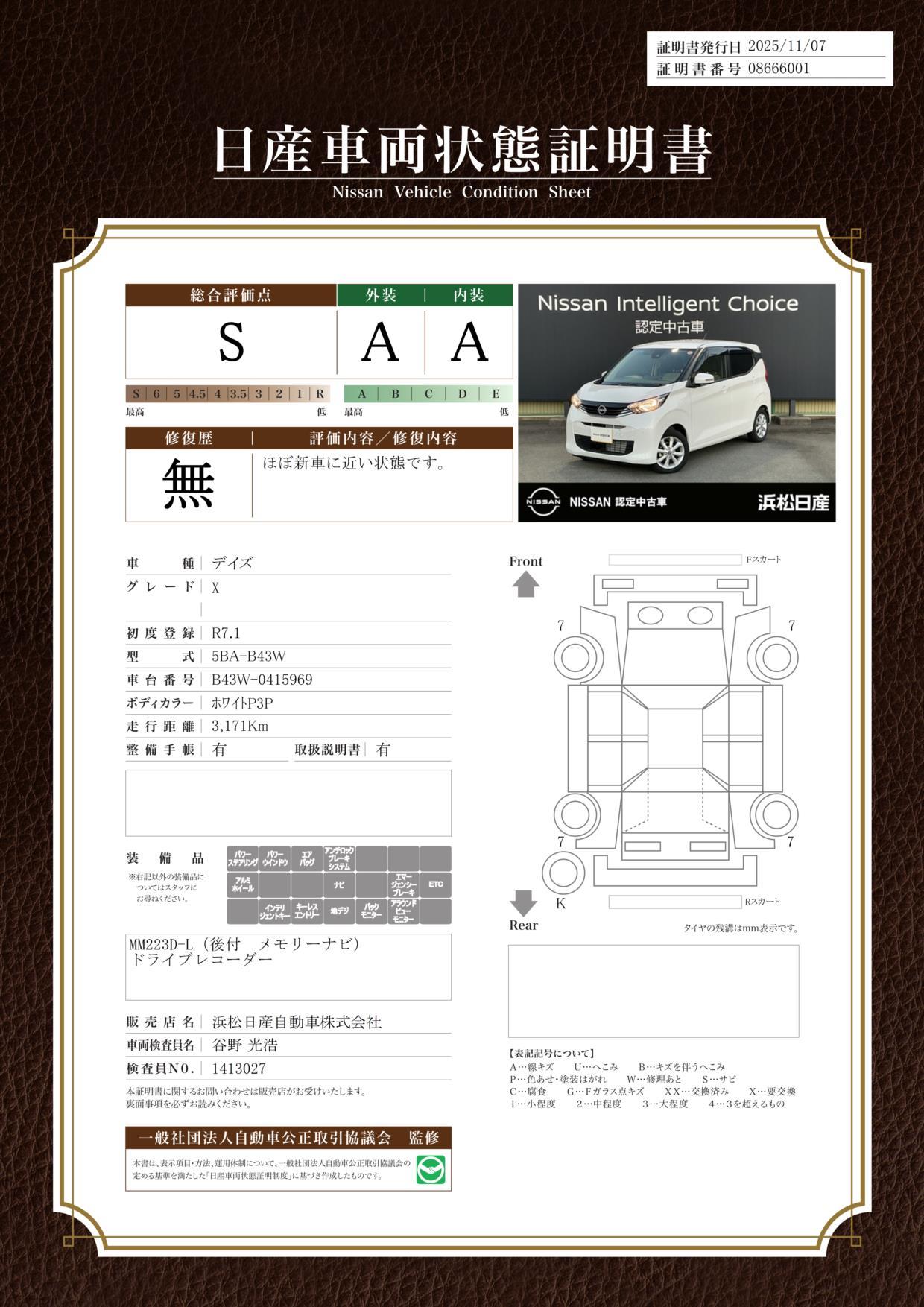 ・走行距離無制限!大切な愛車のパーツを1年間無料保証。 駆動系・電装系パーツなど、幅広いパーツに適応されます。詳しくは、店頭にて・うれしい無料点検付きだから。 1ヶ月または1.000Km点検が無料で受けられます。・信頼の日産サービス工場で、どこでも手軽に点検&修理。