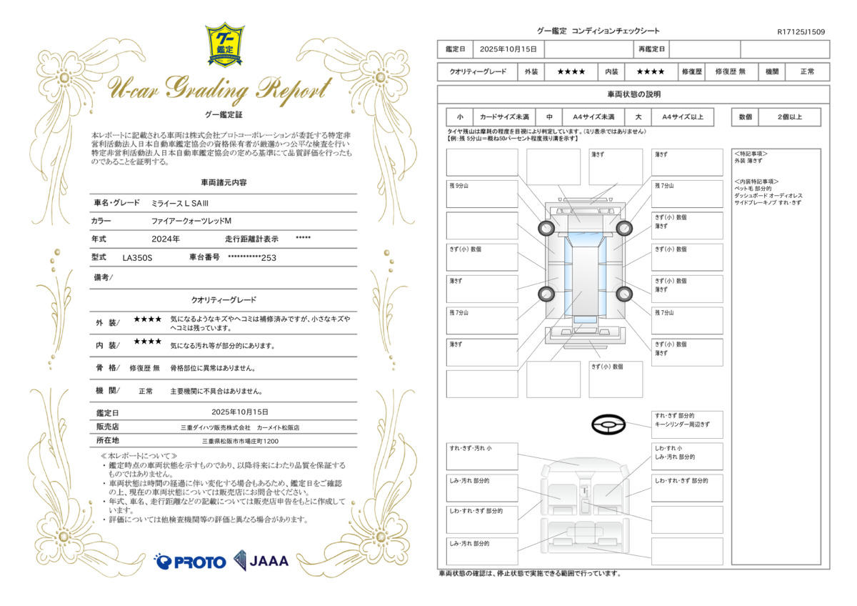 保証期間中の修理費用累計(税込み)が「車両販売価格(車両価格+消費税)」になります。保証修理の限度額を超えた修理費用については、お客様のご負担となります。詳しくは担当スタッフまでお問い合わせ下さい。 |