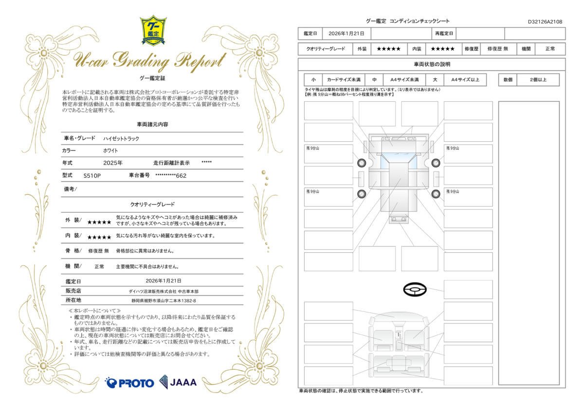 [保証付]:12ヶ月・走行無制限 有償延長保証:対象 |