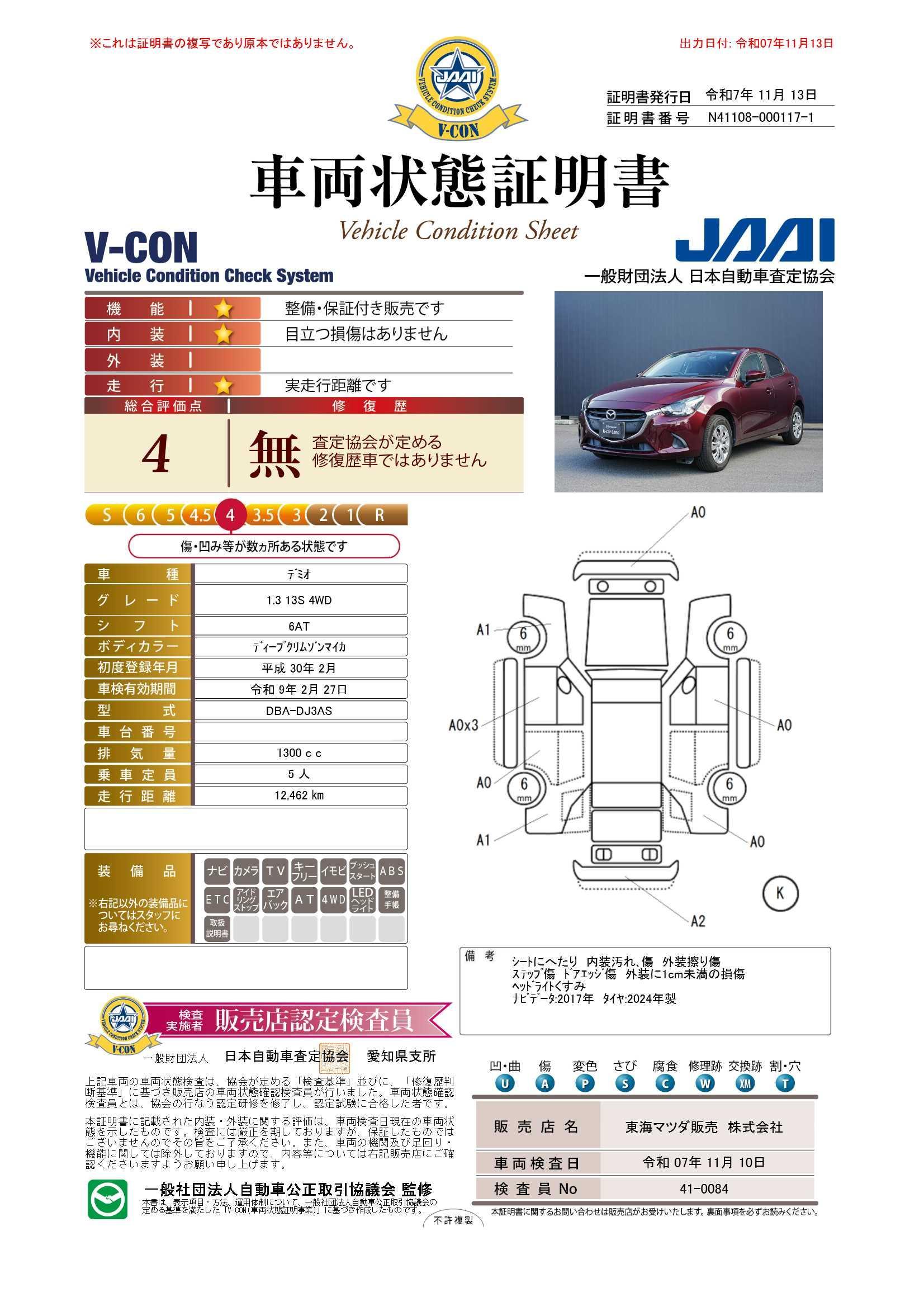 マツダ デミオ 13S 衝突被害軽減システム オートマチックハイビーム 4WD シートヒーター バックカメラ オートライト LEDヘッドランプ Bluetooth