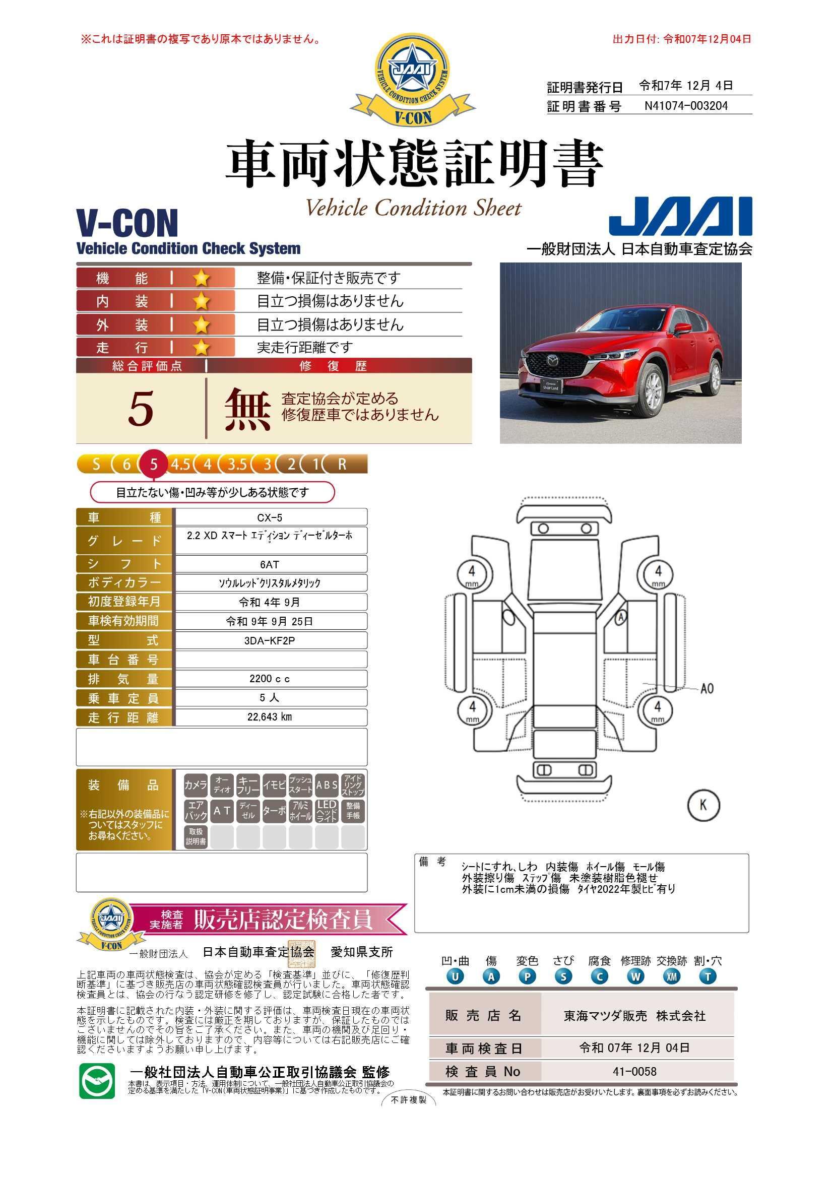 東海マツダの中古車は、全車保証付きで購入後も安心です。