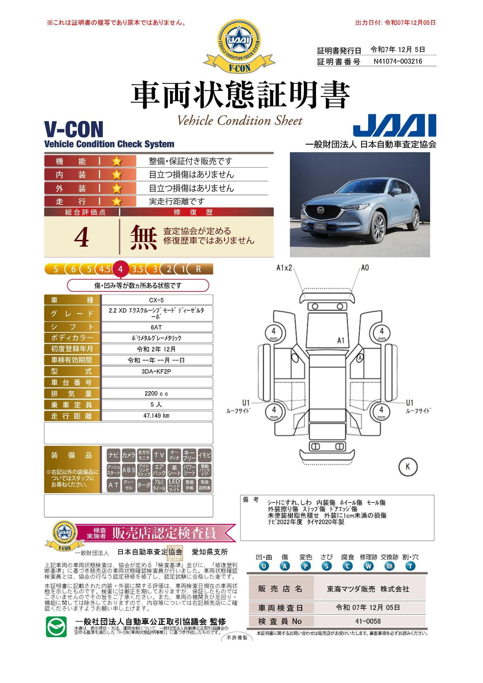 東海マツダの中古車は、全車保証付きで購入後も安心です。