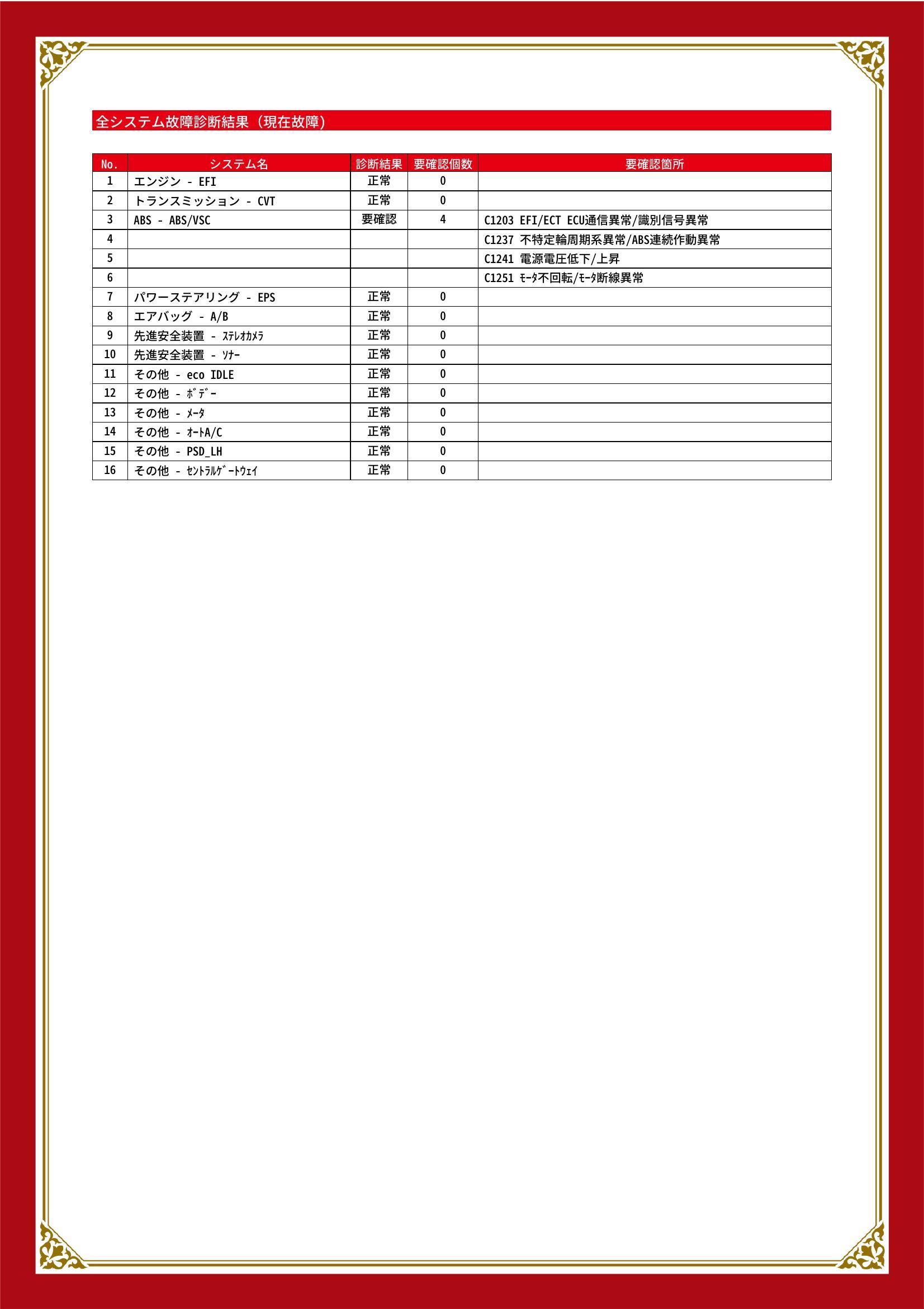 保証項目 | 3ヶ月・3000km以内ならエンジン、トランスミッション、ハイブリッド、ステアリング、ブレーキの各機構における主要項目を無償修理(または交換)いたします。 |