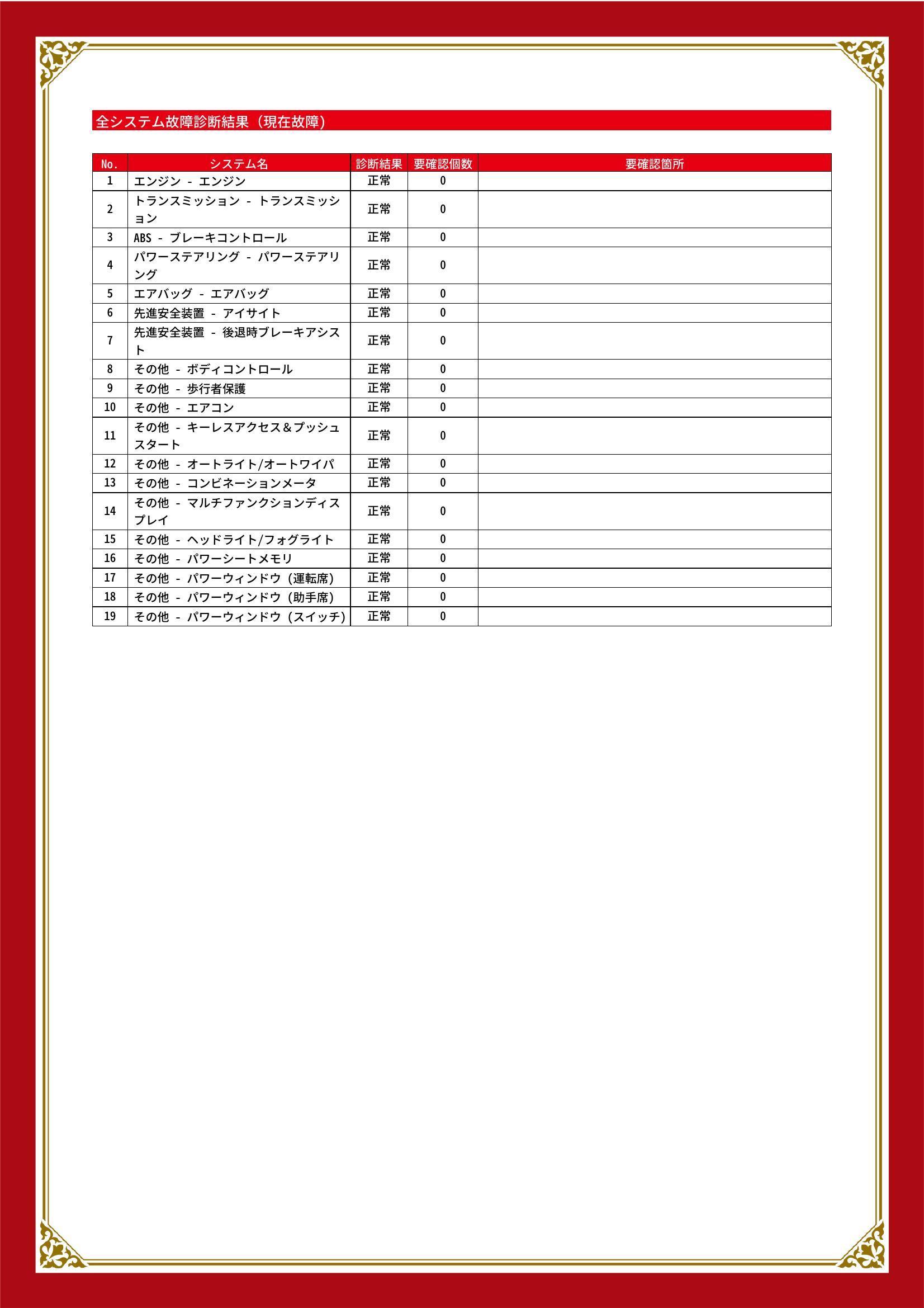 保証項目 3ヶ月・3000km以内ならエンジン、トランスミッション、ハイブリッド、ステアリング、ブレーキの各機構における主要項目を無償修理(または交換)いたします。
