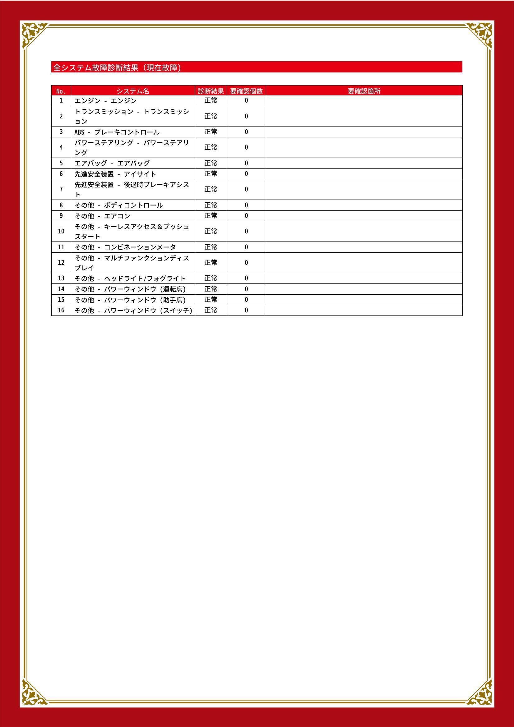 安心の最長10年・走行無制限保証(有償)をご用意。保証内容も充実はもちろん、無料点検&オイル交換や、年中無休の全国・24時間ロードサービスも付帯されておりますのでご安心下さい。 16