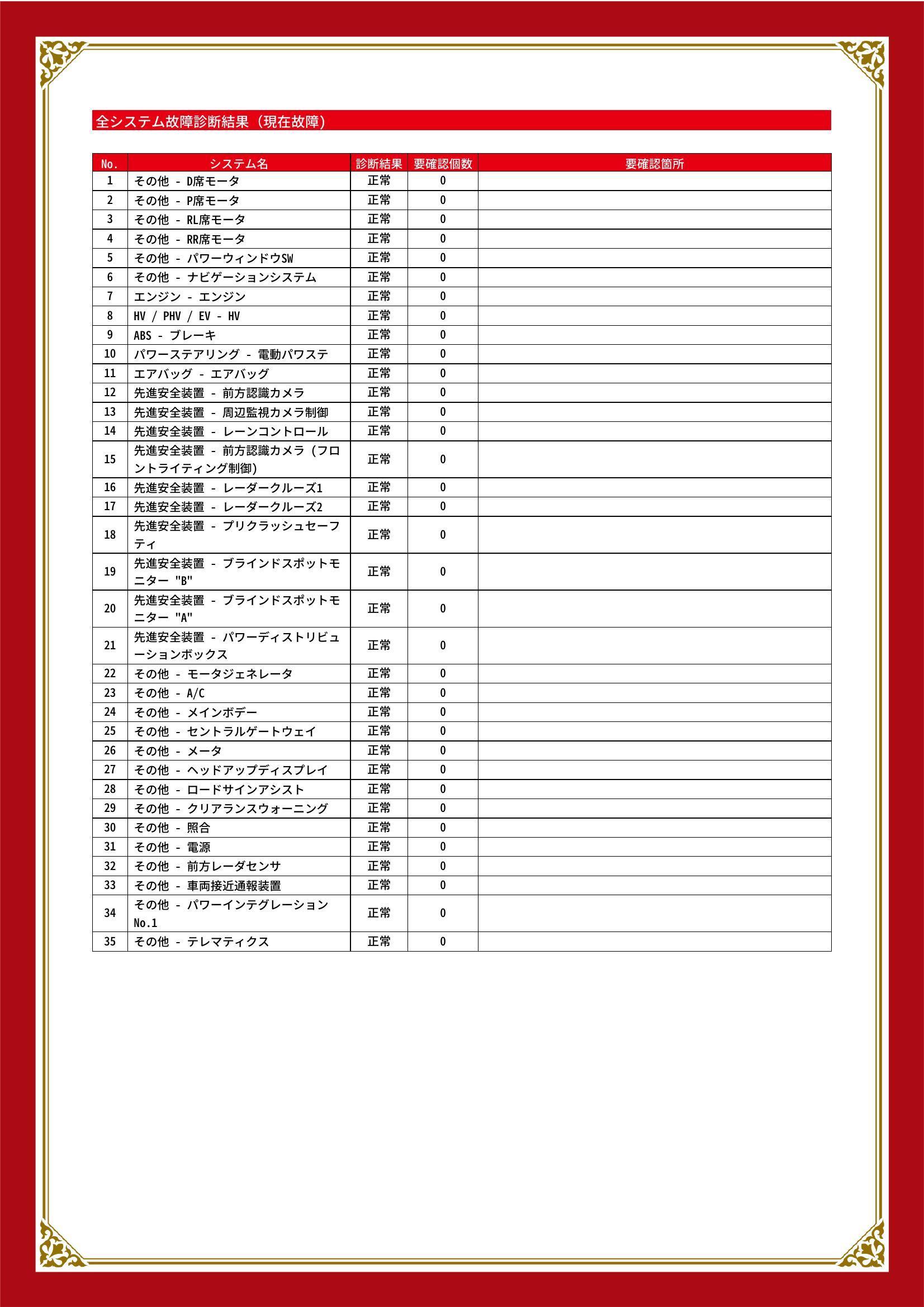 | 保証項目 | 3ヶ月・3000km以内ならエンジン、トランスミッション、ハイブリッド、ステアリング、ブレーキの各機構における主要項目を無償修理(または交換)いたします。 |