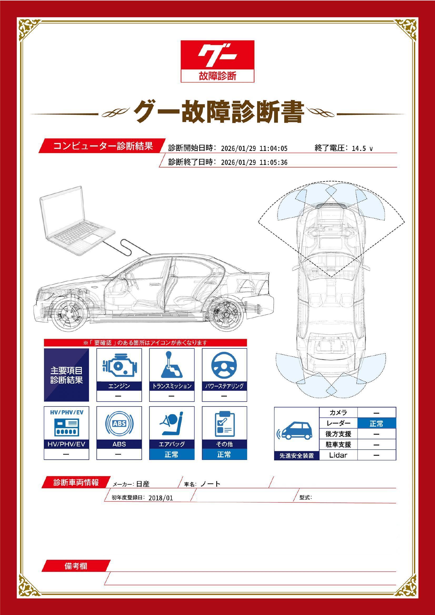 | 保証項目 | 3ヶ月・3000km以内ならエンジン、トランスミッション、ハイブリッド、ステアリング、ブレーキの各機構における主要項目を無償修理(または交換)いたします。 |