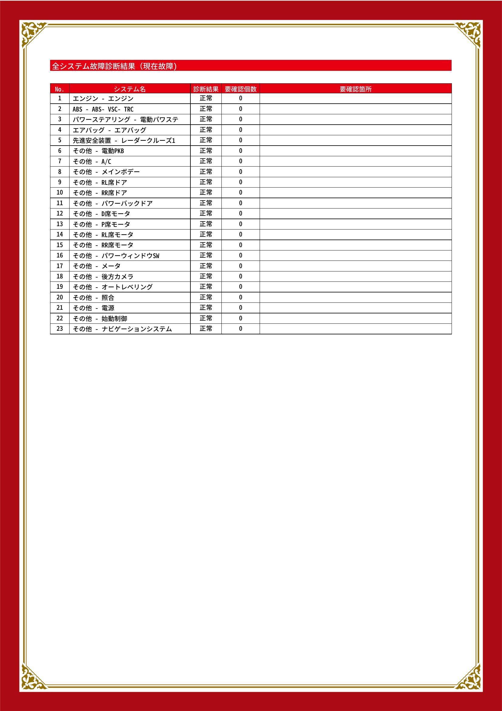 | 保証項目 | 3ヶ月・3000km以内ならエンジン、トランスミッション、ハイブリッド、ステアリング、ブレーキの各機構における主要項目を無償修理(または交換)いたします。 |