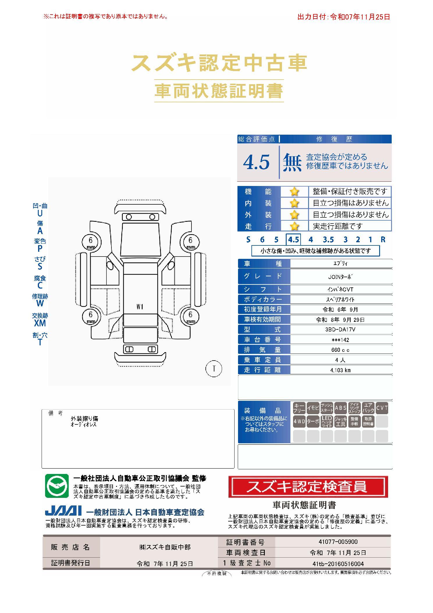 | 保証について | [保証付]:36ヶ月・走行無制限 |
