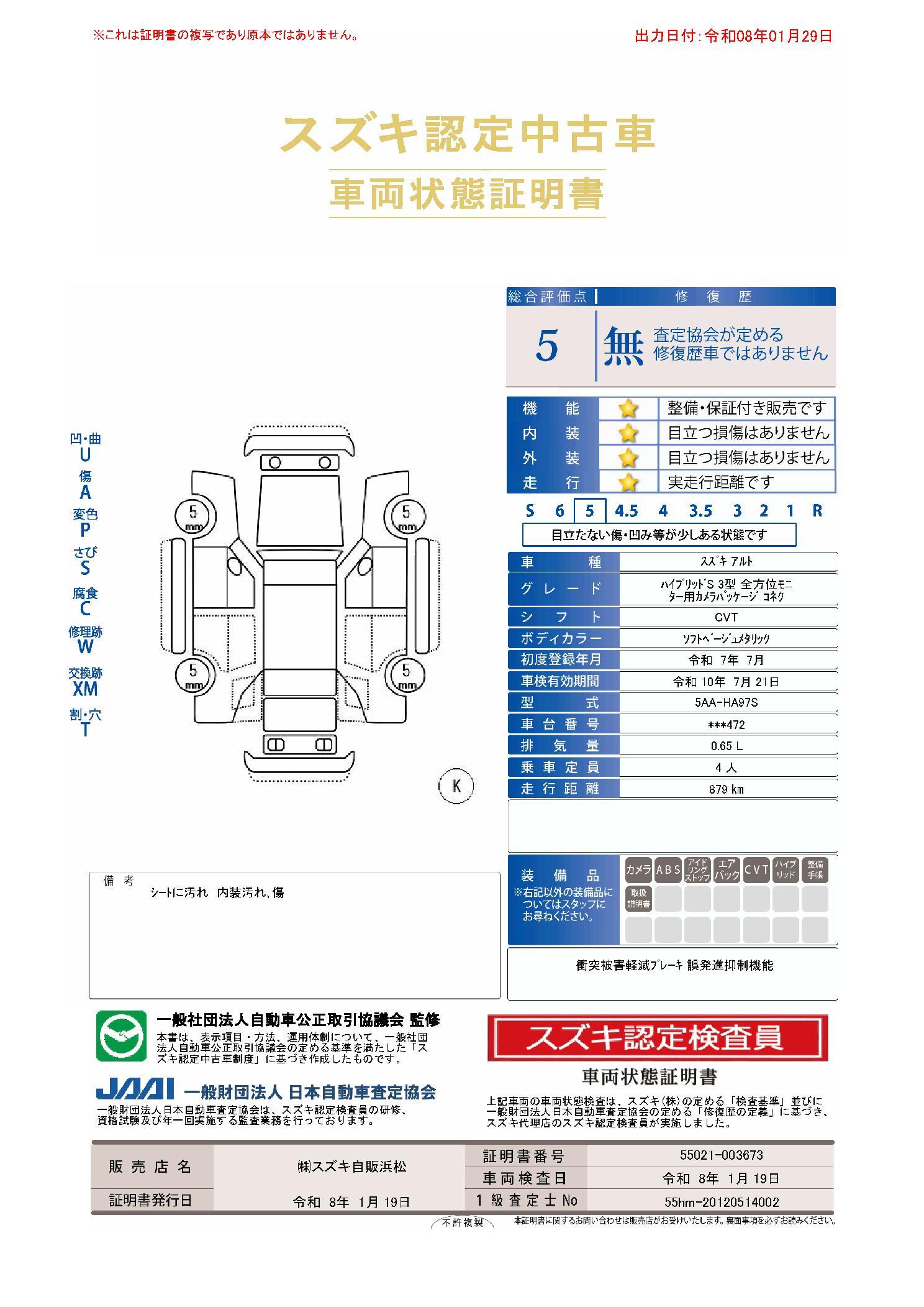 | 保証について | [保証付]:36ヶ月・走行無制限 |