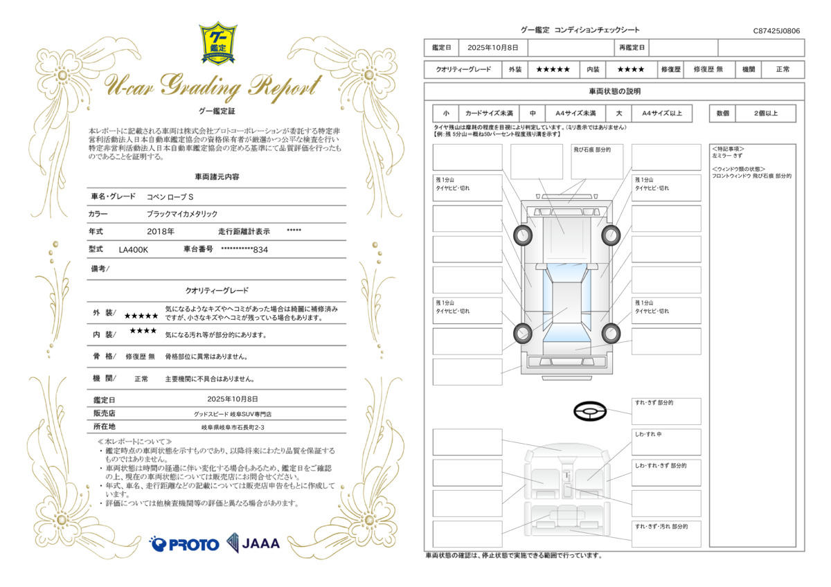 中古車だからこそ、予期せぬ故障をサポートできる有償の修理保証「GS WARRANTY− ジーエスワランティ−」をご用意。初度登録 15 年未満の国産車から、初度登録 13 年未満の輸入車まで加入でき、保証範囲も広く、国産車の保証対象部品は 406 種類 ( 輸入車 238