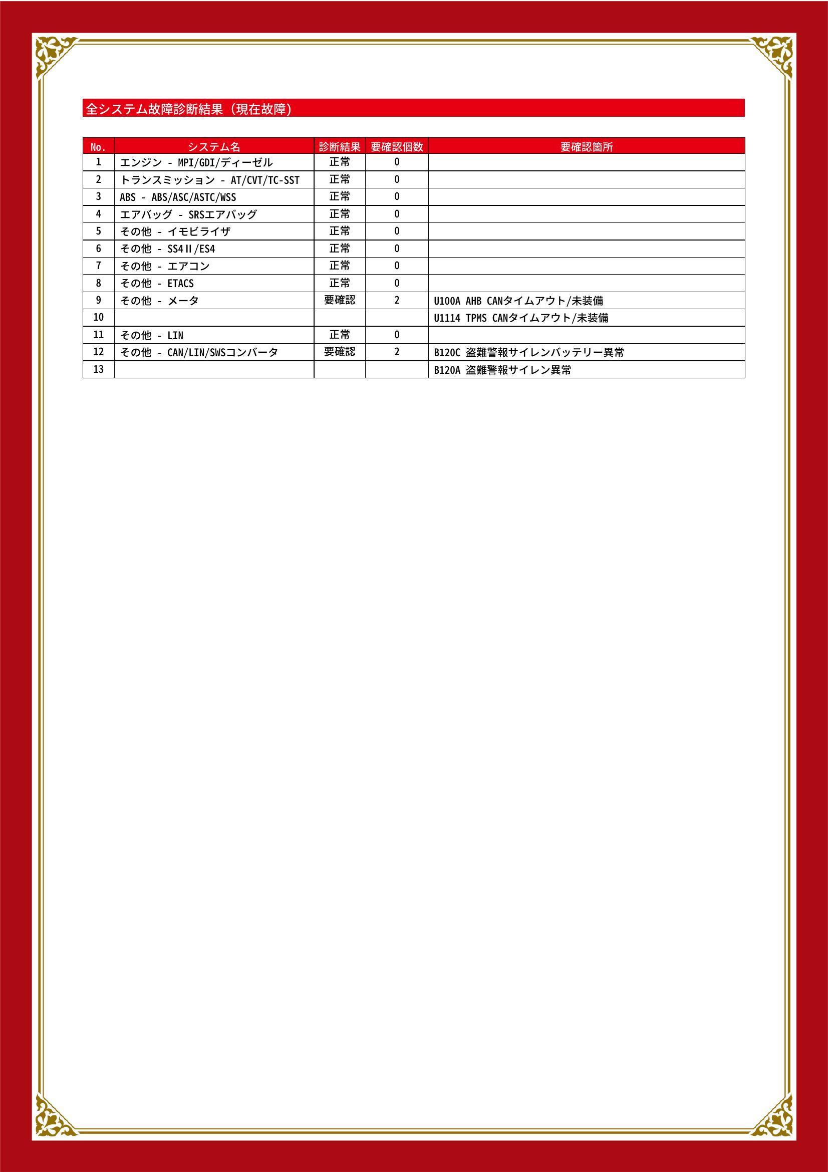 保証項目 | その他、スタンダード・プラチナ保証をご用意。【スタンダード・プラチナ保証】では対象項目が業界最高水準の400部位以上!消耗品以外は保証にてご対応出来ます。詳細は店舗へお問い合わせください! |
