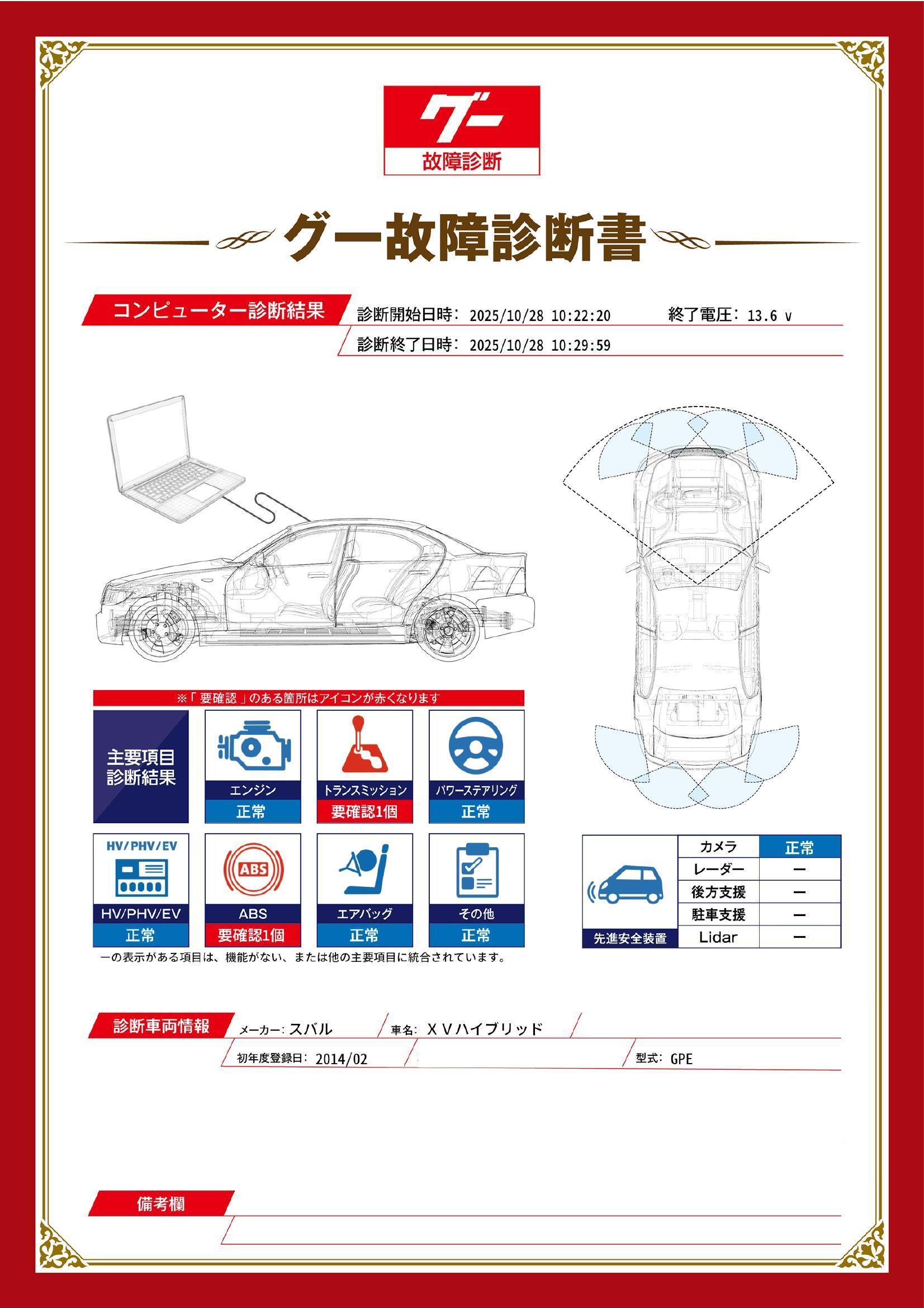 | 保証項目 | その他、スタンダード・プラチナ保証をご用意。【スタンダード・プラチナ保証】では対象項目が業界最高水準の400部位以上!消耗品以外は保証にてご対応出来ます。詳細は店舗へお問い合わせください! |