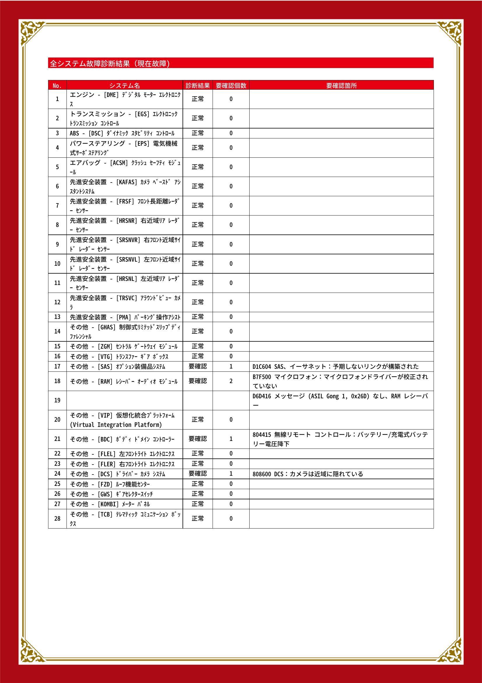 | 保証項目 | |
