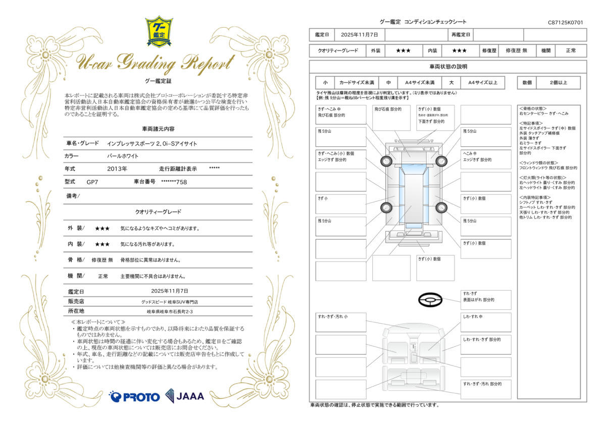 [保証付]:1ヶ月・1000km ※いずれか早い時期が保証適用の条件となります。 業界高水準、最長保証期間はなんと13年。保証項目238部位。任意による1年毎の更新が可能な新しいアフターサービス「GOOD SPEEDオリジナル プレミアムワランティー」をご用意させて頂いております。 |