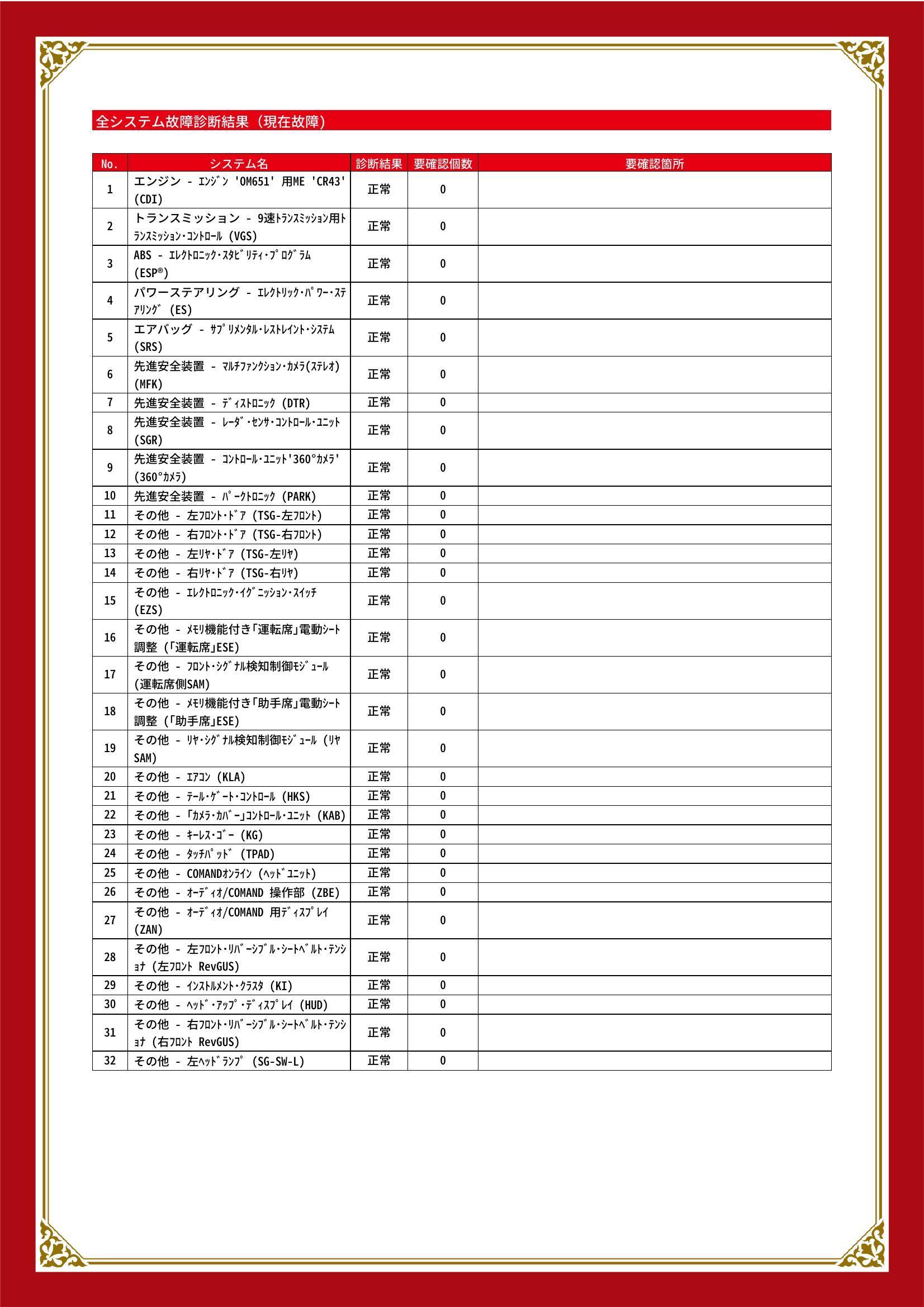 | 保証項目 | ■消耗品、油脂類、外装は保証対象外 全ての消耗部品の補充、交換に要する費用(例:ベルト類、ブレーキディスク・パッド、電球の交換等)は保証修理に含まれません |