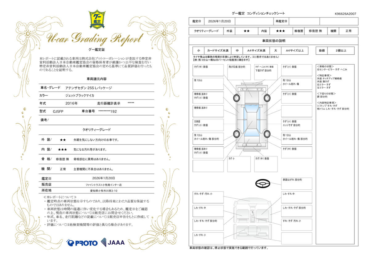 | 保証項目 | その他、スタンダード・プラチナ保証をご用意。【スタンダード・プラチナ保証】では対象項目が業界最高水準の400部位以上!消耗品以外は保証にてご対応出来ます。詳細は店舗へお問い合わせください! |