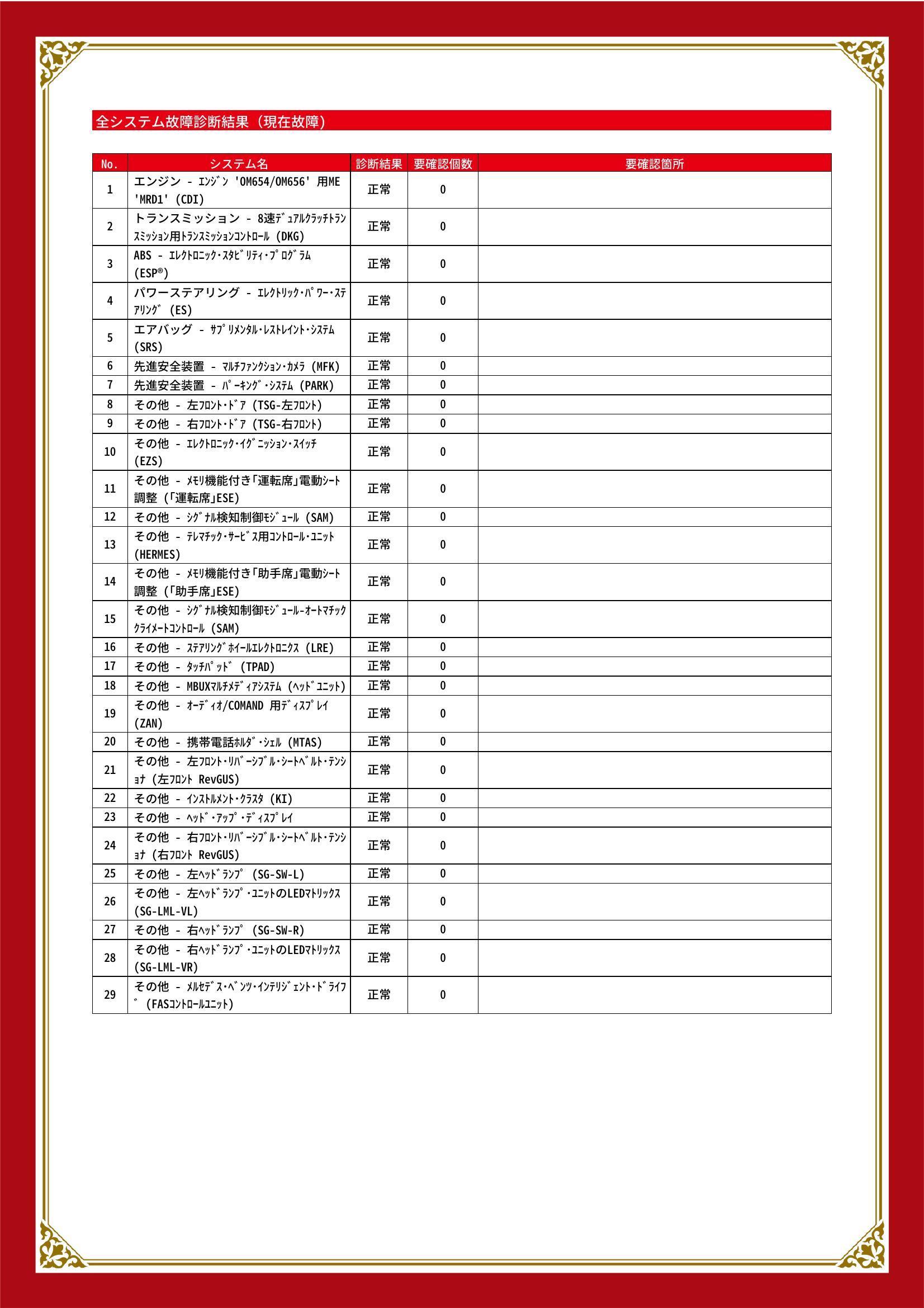 | 保証項目 | ■消耗品、油脂類、外装は保証対象外 全ての消耗部品の補充、交換に要する費用(例:ベルト類、ブレーキディスク・パッド、電球の交換等)は保証修理に含まれません |