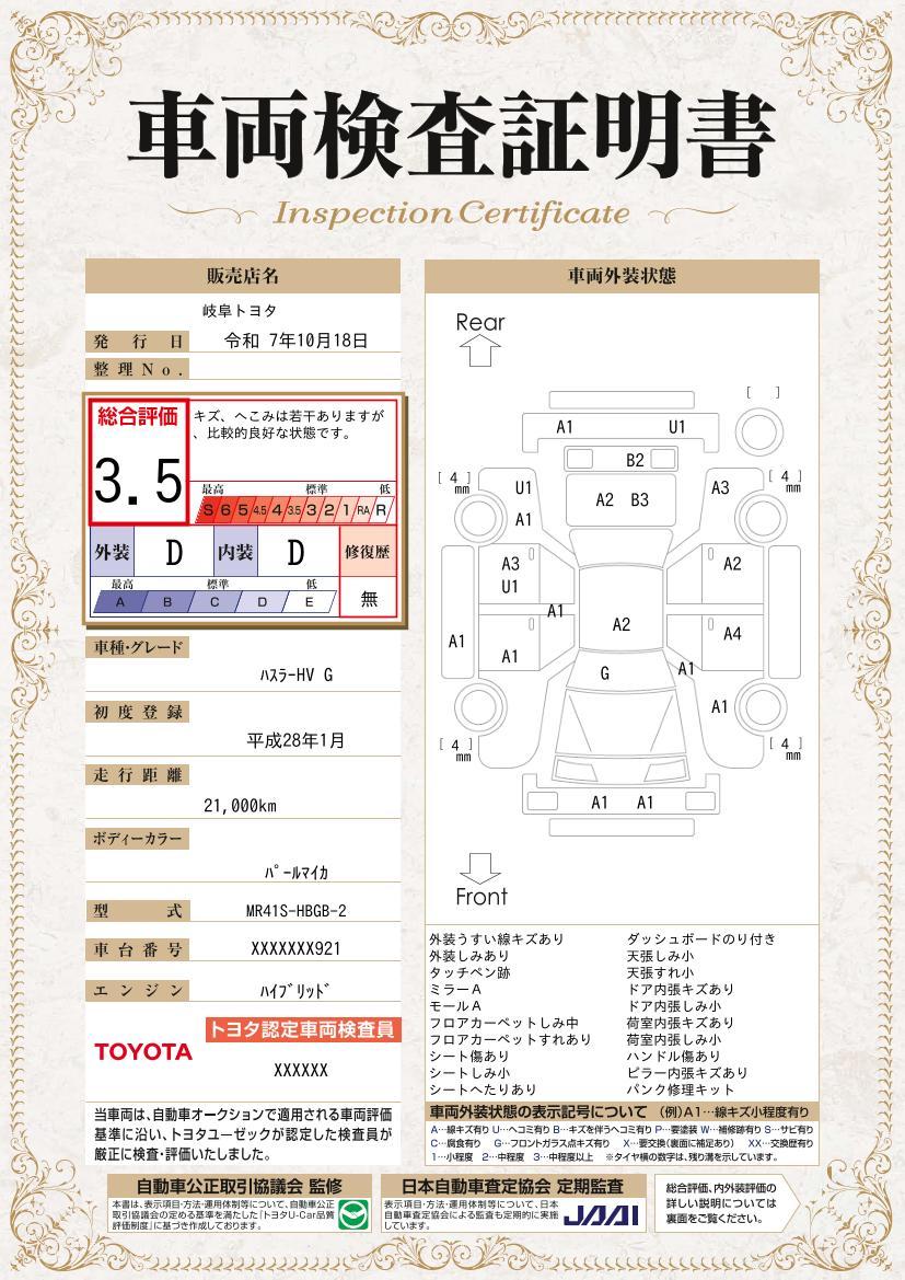 約60項目・5000部品が保証対象(エンジン機構・ステアリング機構・ブレーキ機構・エアコン・ナビゲーション・テレビなども保証)さらに全国約5000箇所で保証修理可能、万が一の場合でも、全国のトヨタテクノショップで保証修理が受けられる、オールトヨタのU−Carネットワーク保証です。