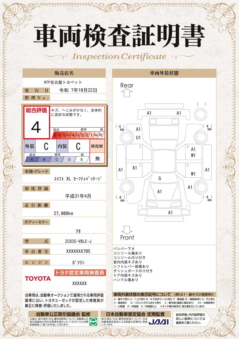 車両検査証明書はクルマの状態を評価点と車両展開図で表示しています。