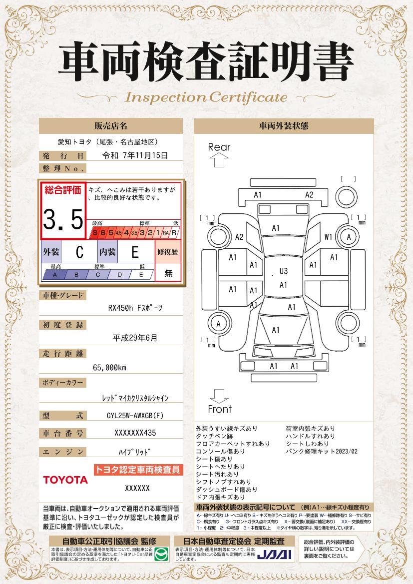 RX RX450h Fスポーツ メモリ−ナビ パノラマガラスルーフ 0201589A20251116T003 3
