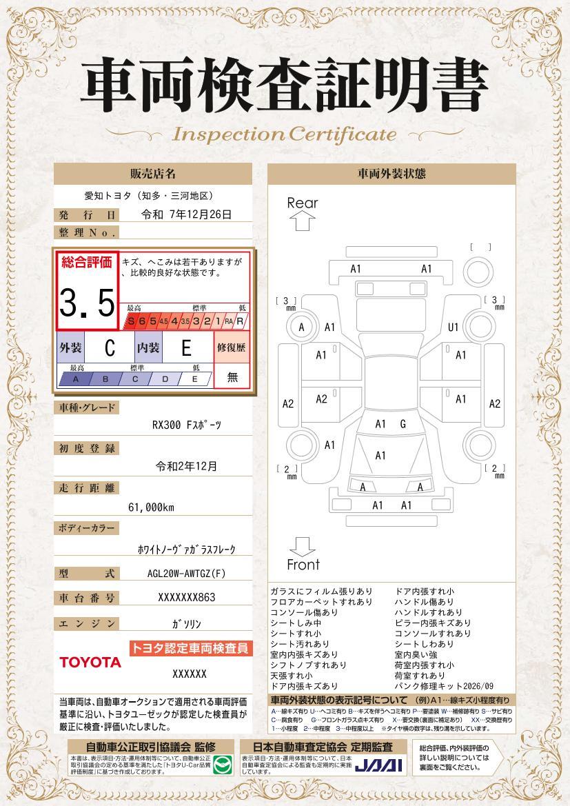 RX RX300 Fスポーツ プリクラッシュ AW 0201314A20260106T002 12