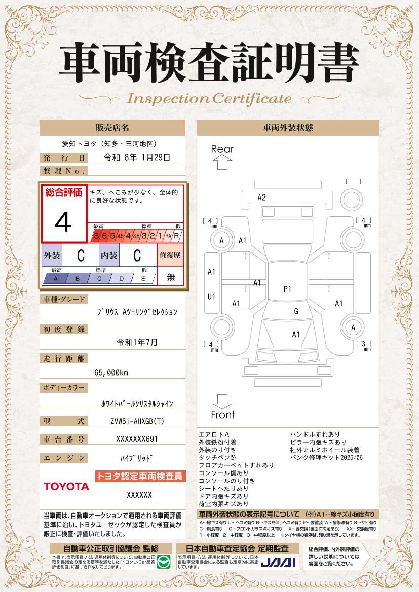 [保証付]:12ヶ月・走行無制限 ロングラン保証1年<走行距離無制限> +ハイブリッド保証<保証期間は初度登録年月から10年目まで、もしくは3年間のいずれか長い方。但し走行距離20万キロまで> |