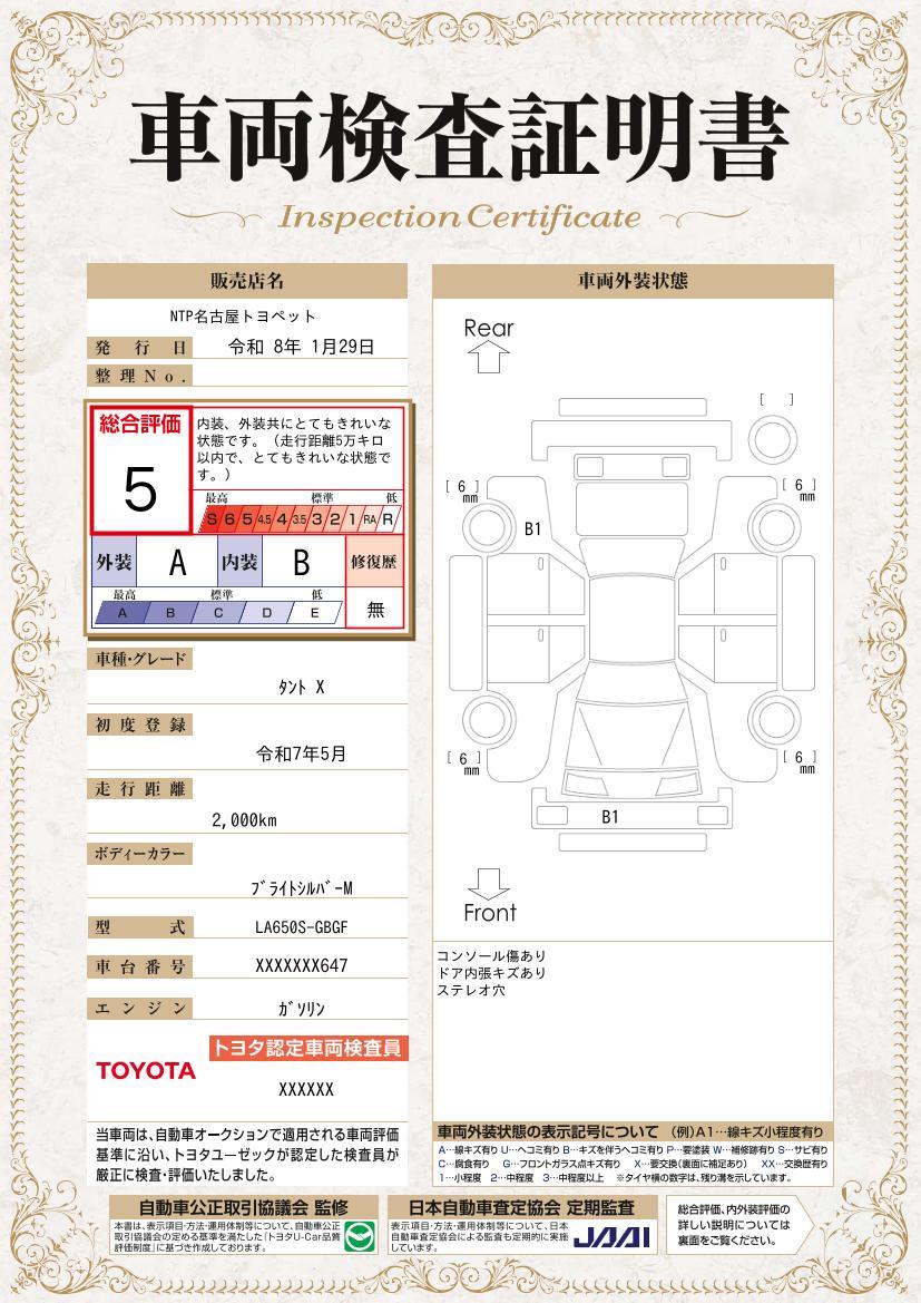 車両検査証明書はクルマの状態を評価点と車両展開図で表示しています。