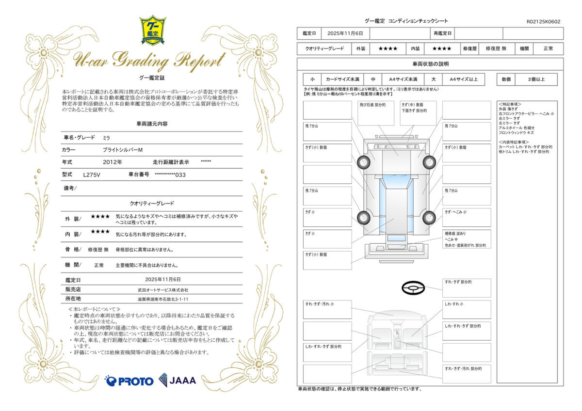 | 保証について | [保証付]:1ヶ月・1000km ※いずれか早い時期が保証適用の条件となります。 |