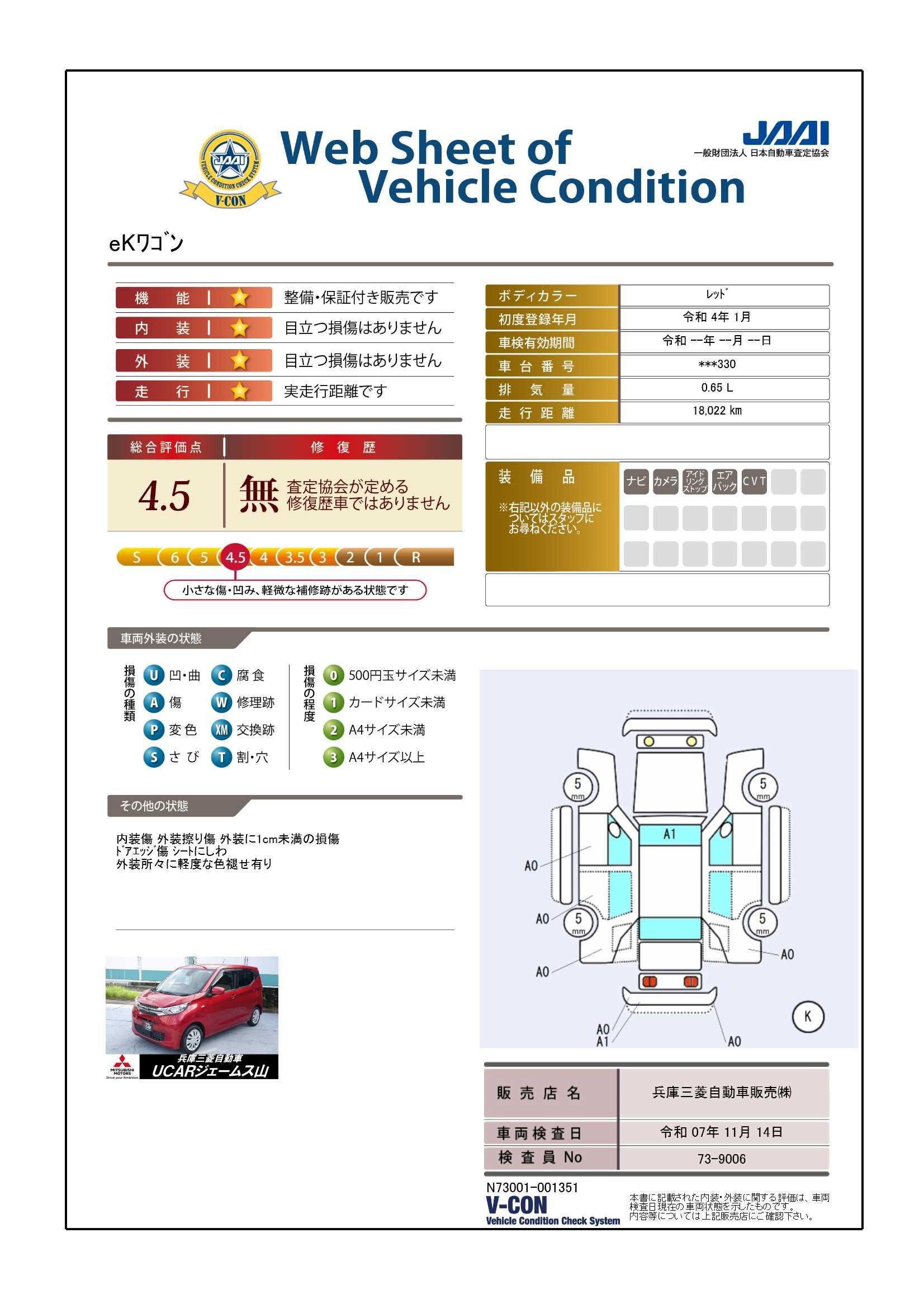 [保証付]:36ヶ月・走行無制限 3年間走行距離無制限・全国三菱ディーラーのサービス拠点での保証修理が可能ですのでお出かけ先での故障やお引っ越しの際もご安心ください!また購入後1か月での無料点検サービスもございます。 |