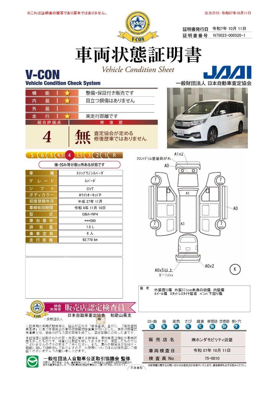 ステップワゴンスパーダ スパーダ 純正メモリーナビ ホンダセンシング LEDヘッドライト 0701091A30251023W006 38