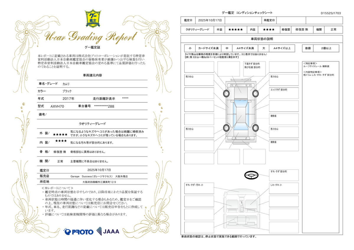 磨き仕上げでも消しきれない傷等は車両により変わりますので担当営業までお尋ねください。 |