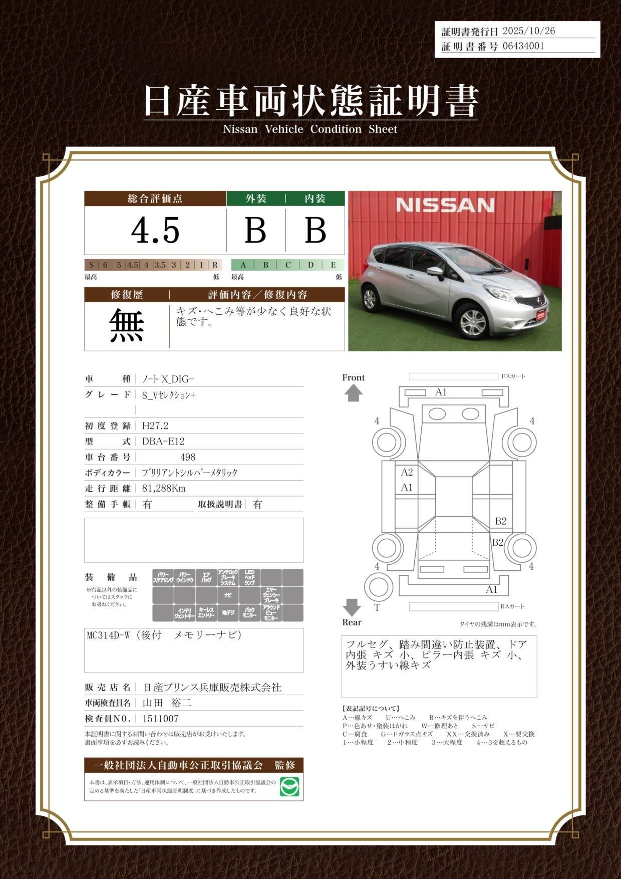 | 保証修理受付先 | ★信頼の日産サービス工場で、どこでも手軽に点検&修理★日産車のことを一番知り尽くしたプロが、徹底的にサポートします。 |