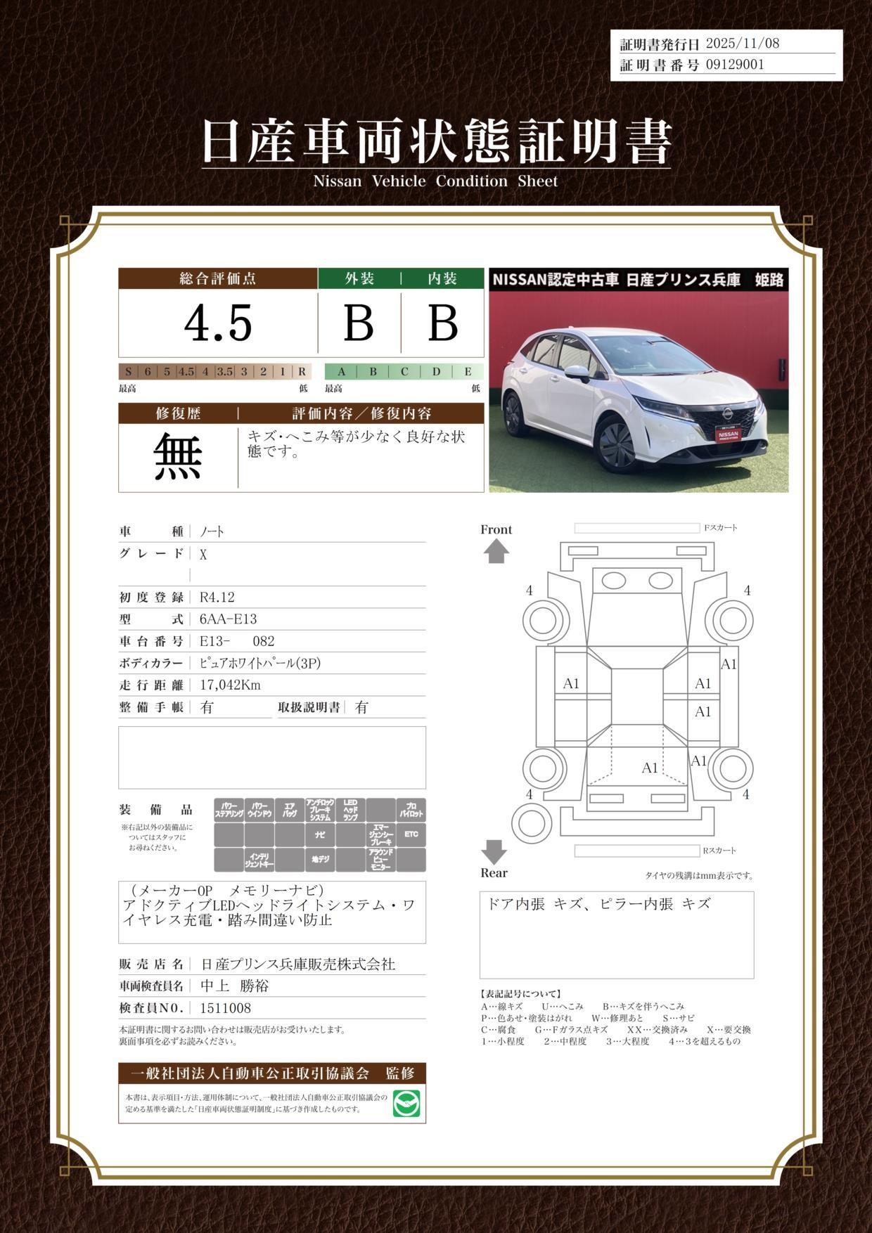 ノート X メモリーナビ アラウンドビューモニター 地デジ 0701786A30251107W003 42