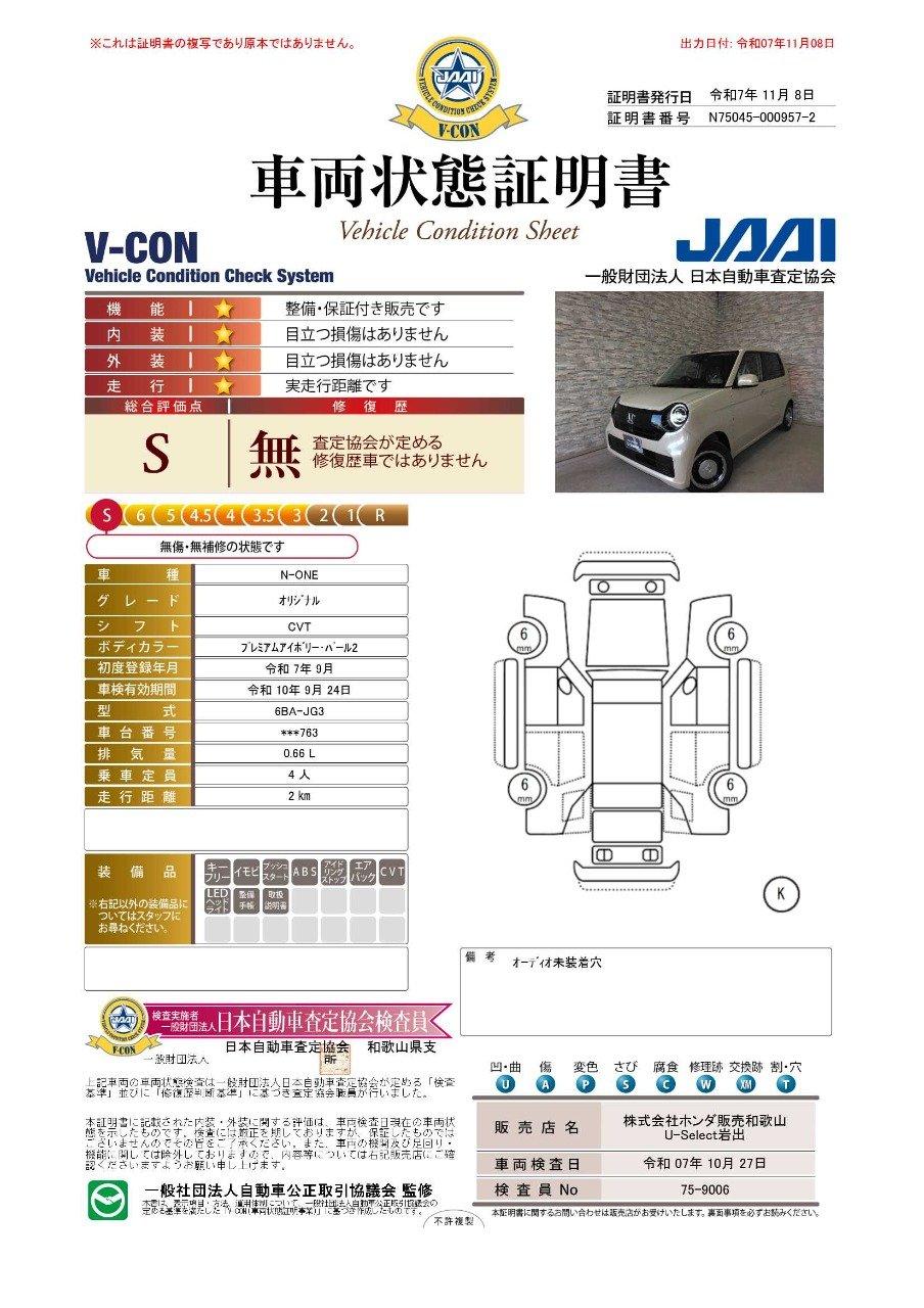 弊社での販売車両はホンダのユーセレクト認定を受けた車両です。原則全国のホンダにて1年間、走行距離無制限にて保証対応可能です。