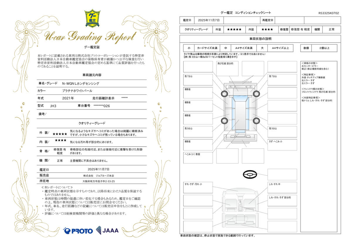 修復歴 あり 車体色 プラチナホワイトパール