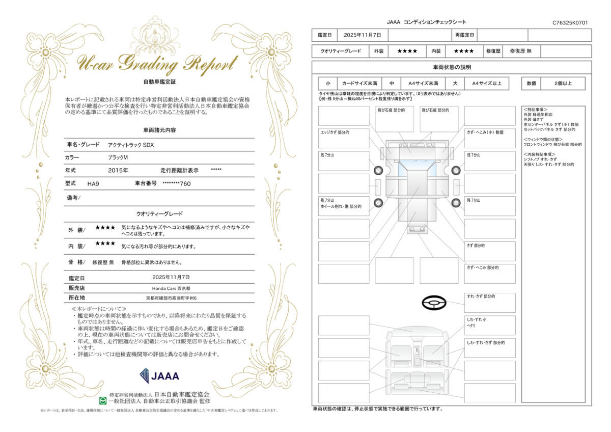 | 保証項目 | メーカー保証またはメーカー特別保証に準ずる。保証項目リスト納車時にお渡し |