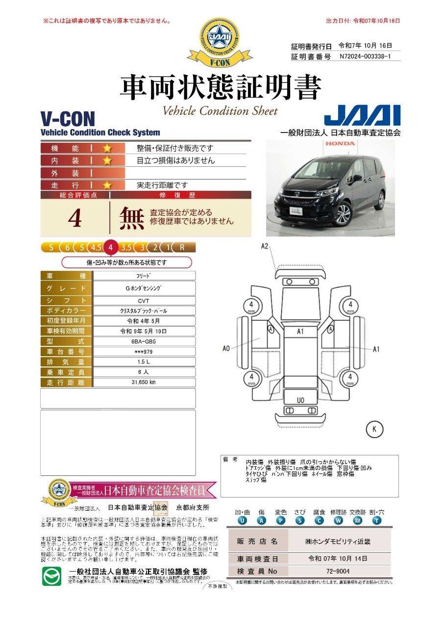 | 保証修理受付先 | 〔Honda Cars 京都 U−Select久世橋〕 京都市南区吉祥院石原長田町1−5 TEL:075−661−5775までご連絡下さいませ。 |
