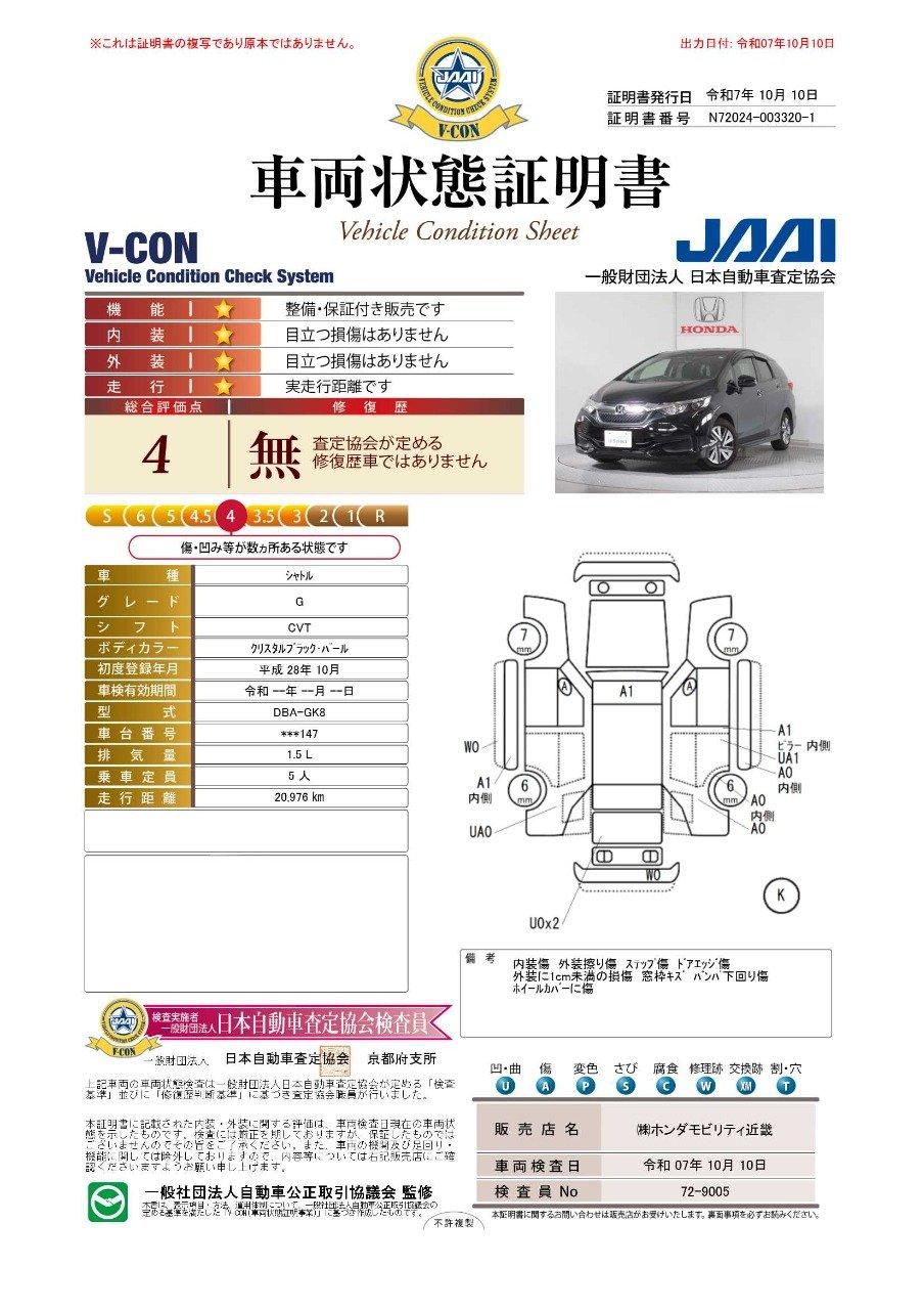 [保証付]:12ヶ月・走行無制限 【U−Select保証】1年間、走行距離無制限の保証が付きます。有償でプラス1年もしくは、プラス4年の延長保証プランもございます。全国のホンダ販売店で受けられる「安心の保証」です! |