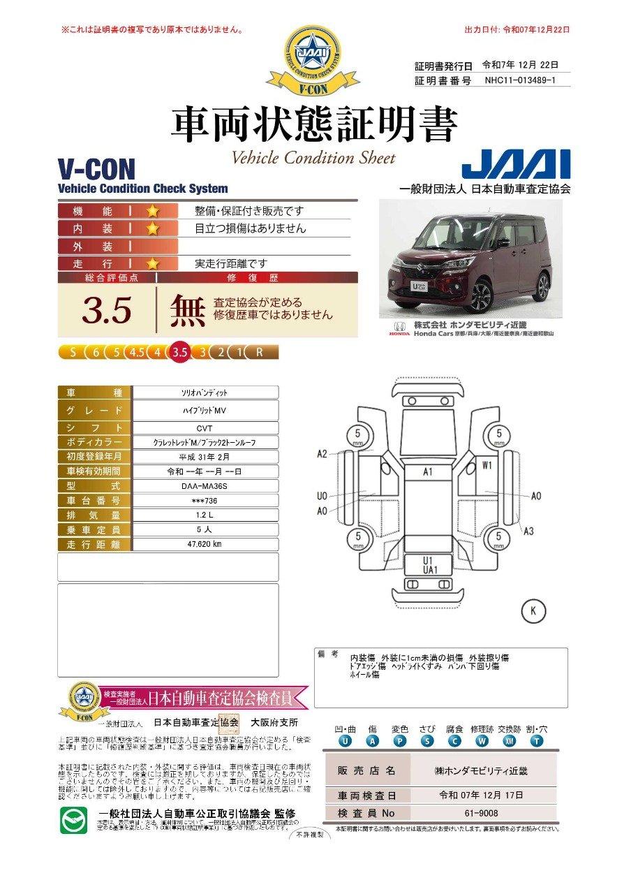 | 保証修理受付先 | 当店へご連絡下さい。当社または、お近くのホンダディーラーサービス工場をお手配いたします。 |
