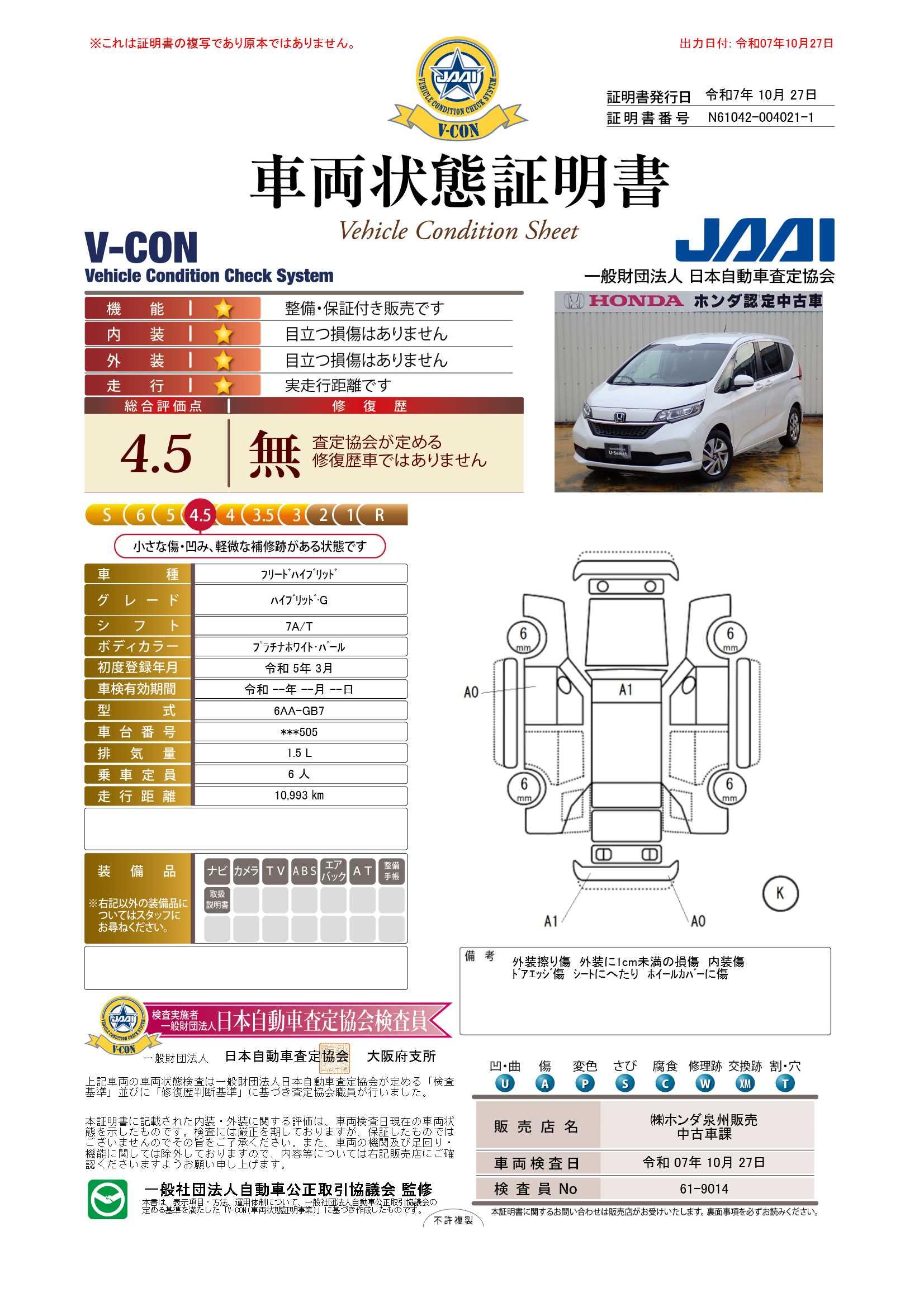 [保証付]:12ヶ月・走行無制限 全国のホンダディーラーで対応できる安心の保証です。有料で最大5年間まで保証できるホッと保証プラスもあります。詳しくはスタッフまで! |